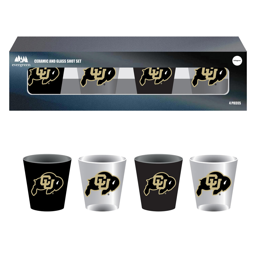4-Piece Ceramic and Glass 2oz. Cup Set, University of Colorado