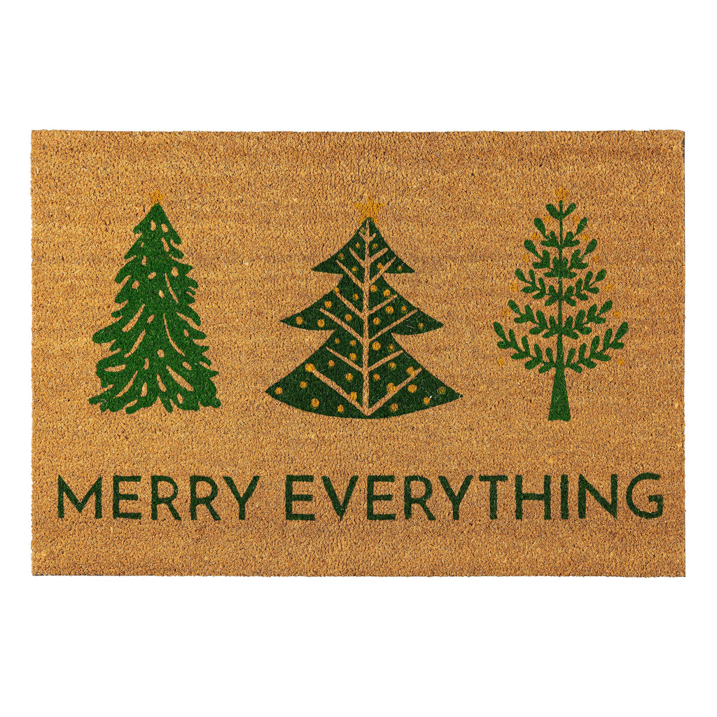 Welcome guests with the VivaStyle Coir Mat, featuring a festive foliage design perfect for the holiday season. Measuring 24" x 36", this coir mat is crafted from durable, natural fibers, making it ideal for high-traffic entryways. The vibrant green tree pattern and "Merry Everything" message add a cheerful touch to your porch or doorstep. With a height of 0.59 inches, it effectively traps dirt and debris, keeping your interiors clean. Enhance your home’s seasonal charm while providing a practical solution for welcoming visitors.