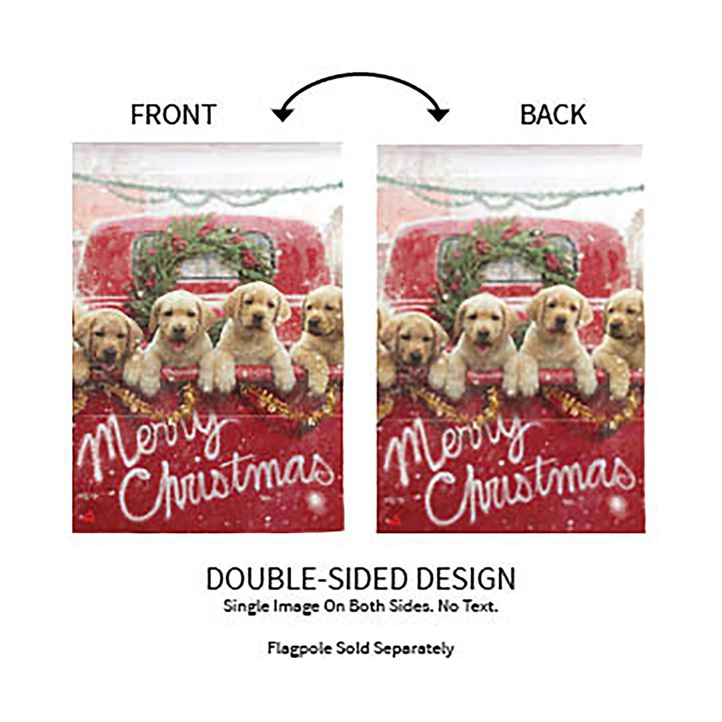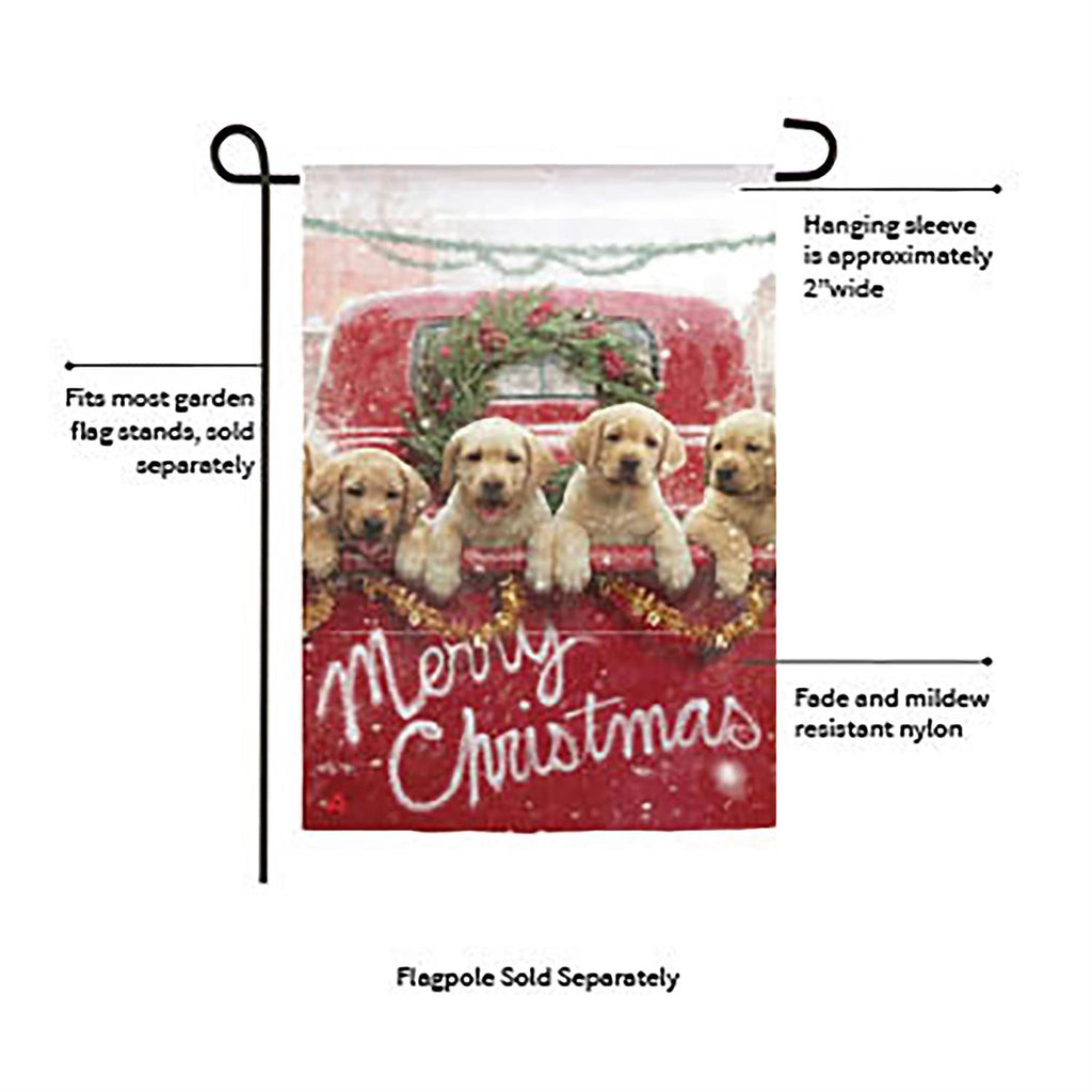 Enhance your holiday décor with this charming Red Truck with Puppies Garden Suede Flag. Featuring an adorable scene of puppies in a festive red truck, this flag adds a heartwarming touch to any garden or porch. Made from durable suede, it withstands the elements while maintaining vibrant colors. The double-sided design ensures visibility from all angles, creating a welcoming atmosphere for guests. Measuring 12.5 x 18 inches, it's the perfect size for your outdoor display.