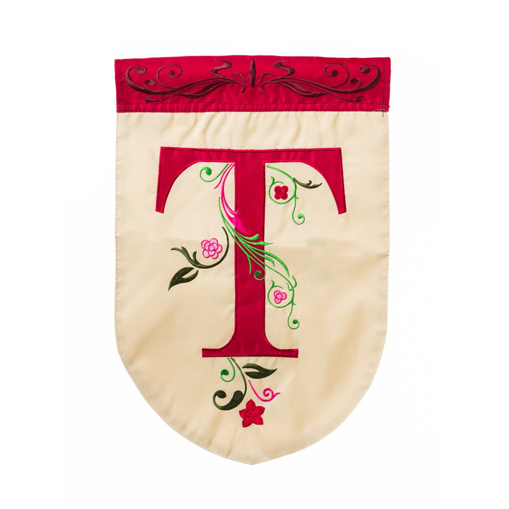 Add a personalized touch to your garden with the Floral Scroll Monogram T Applique Flag. Measuring 12.5 inches in length and 18 inches in height, this elegant flag is the perfect size to make a statement without overwhelming your space. Crafted with durable materials, it features a sophisticated floral scroll pattern that seamlessly blends with any outdoor décor. Ideal for spring and summer, this monogrammed flag not only enhances the beauty of your garden but also adds a unique and personal flair. Easy to mount and designed to withstand the elements, it's a practical choice for any garden enthusiast looking to showcase their style.
