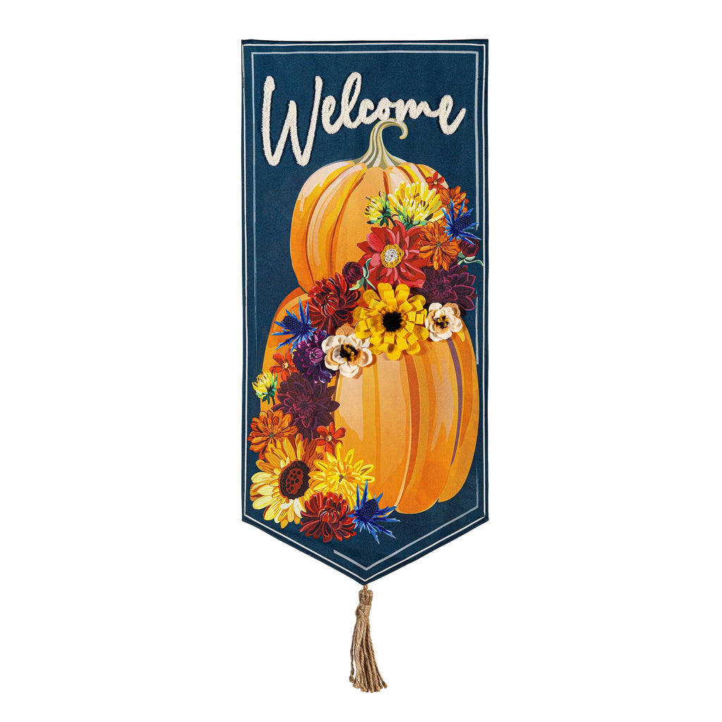 Celebrate the beauty of fall with this Floral Wrapped Pumpkin flag, featuring a vibrant floral and pumpkin design that warmly greets guests. Perfect for adding a seasonal touch to any outdoor space.