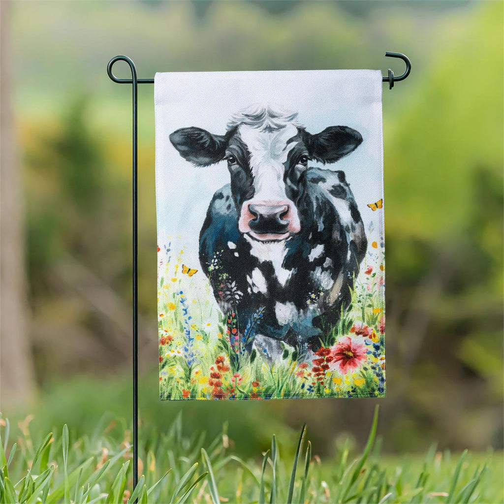 Add a touch of rustic charm to your outdoor space with the Petal & Plow Floral Cow Burlap Garden Flag. This delightful flag features a whimsical cow set against a vibrant floral backdrop, bringing a joyful splash of color and nature-inspired design to your garden or yard. Crafted from durable burlap, this flag is perfect for the spring and summer months, making it a fabulous addition to any farmhouse or country-themed décor. Its generous size ensures visibility from a distance, inviting warmth and personality to your home.
