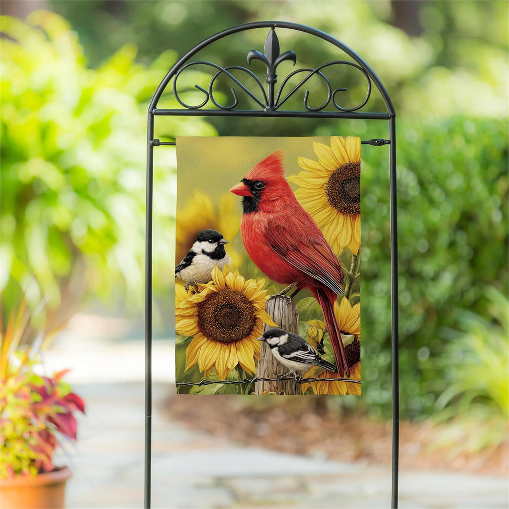The Sunflower Days Suede Garden Flag brings the vibrant charm of summer right to your doorstep. Crafted from soft, durable suede, this flag features a striking design of bright sunflowers and lively birds against a vivid backdrop. Measuring 18.0 by 12.5 inches, it’s perfectly sized to make a bold statement in your garden or yard. The flag's high-quality material ensures it withstands various weather conditions, maintaining its colorful appeal throughout the seasons. Ideal for adding a touch of nature-inspired beauty to any outdoor space, this flag is an inviting sight for both guests and passersby.