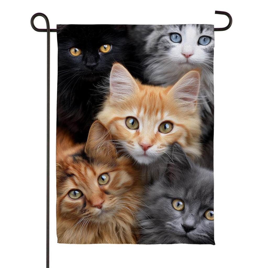 Add a touch of feline charm to your garden with the vibrant CATS! Suede Garden Flag. Measuring 18 inches by 12.5 inches, this flag features a delightful group of adorable cats, perfect for cat lovers and garden enthusiasts alike. Made from durable suede, it offers a soft texture while ensuring resilience against the elements. The vivid colors and detailed design make it a standout piece for any outdoor space, bringing personality and warmth to your garden all year round.