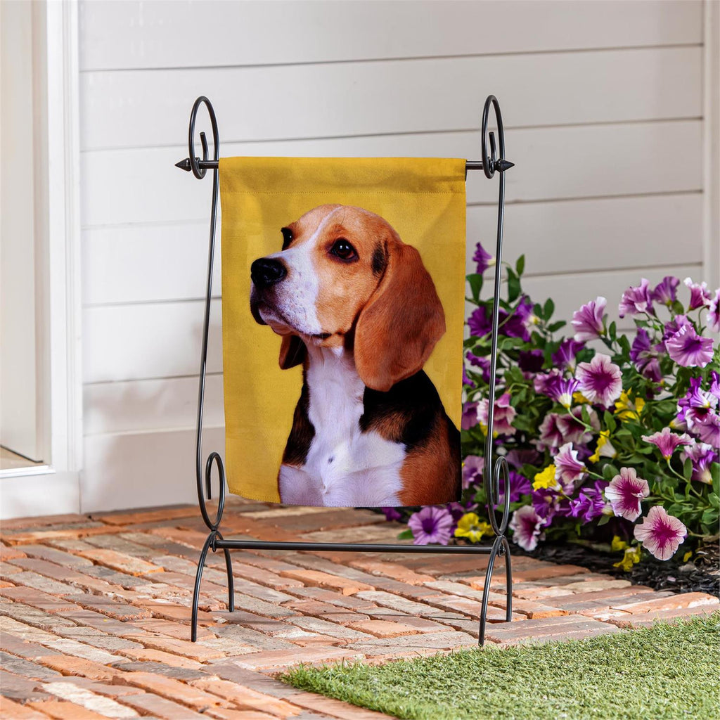 Celebrate your love for dogs with this charming Beagle suede garden flag. Measuring 18 inches by 12.5 inches, this vibrant flag showcases a delightful Beagle portrait, perfect for adding a touch of canine charm to your outdoor space. Made from durable suede, it’s designed to withstand the elements while maintaining its vivid colors. Ideal for dog lovers, this flag makes a wonderful addition to any garden, porch, or patio, offering a welcoming feel to your home. Easy to install, it fits most standard flag poles, making it a versatile decorative piece.