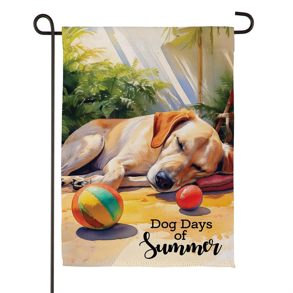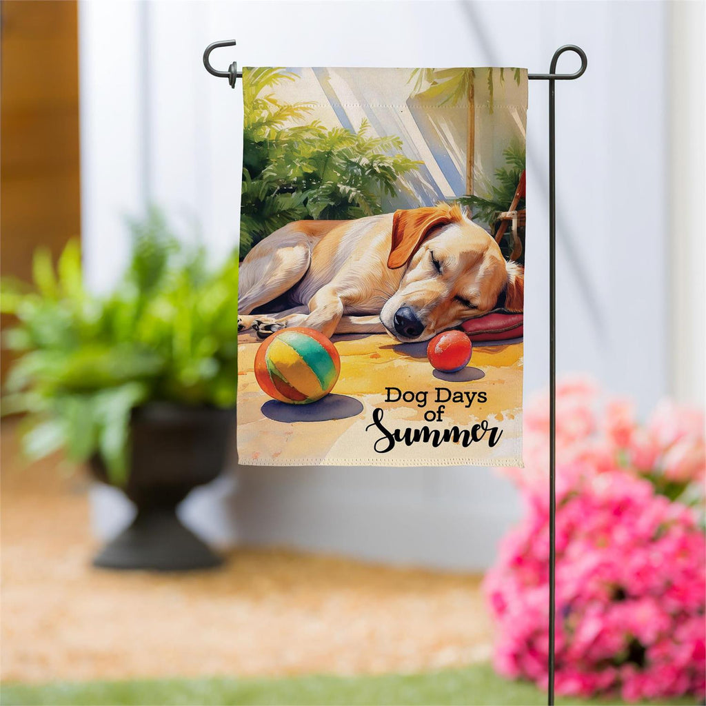 Celebrate the warmth and relaxation of summer with the Dog Days Of Summer Suede Garden Flag. This charming flag features a peaceful dog lounging under the sun, embodying the essence of lazy summer days. Made from durable suede, this flag is perfect for outdoor display, adding a touch of whimsy to your garden or yard. Its vivid colors and detailed design ensure it stands out in any season, providing a cheerful welcome to guests. Measuring 18.0 inches by 12.5 inches, it fits standard garden flag poles, making it an effortless addition to your outdoor décor.