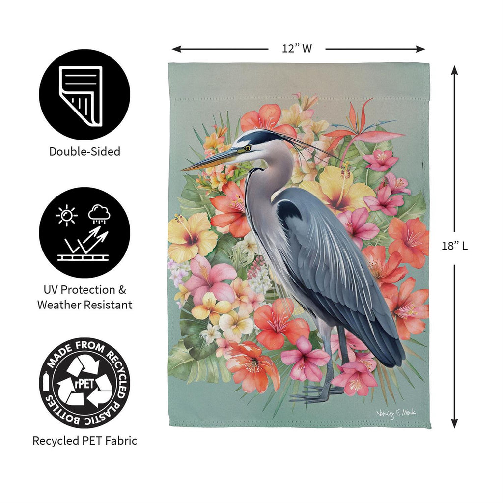 Add a splash of tropical elegance to your garden with the Tropical Heron Suede Garden Flag. Measuring 18.0 x 12.5 inches, this flag features a stunning heron surrounded by vibrant tropical flowers, perfect for enhancing your outdoor decor. Crafted from durable suede, it offers exceptional weather resistance and vibrant colors that last. The detailed design captures the essence of a serene tropical paradise, making it an ideal choice for garden enthusiasts seeking a touch of nature's beauty. Easy to hang, this flag is a perfect addition to any season.