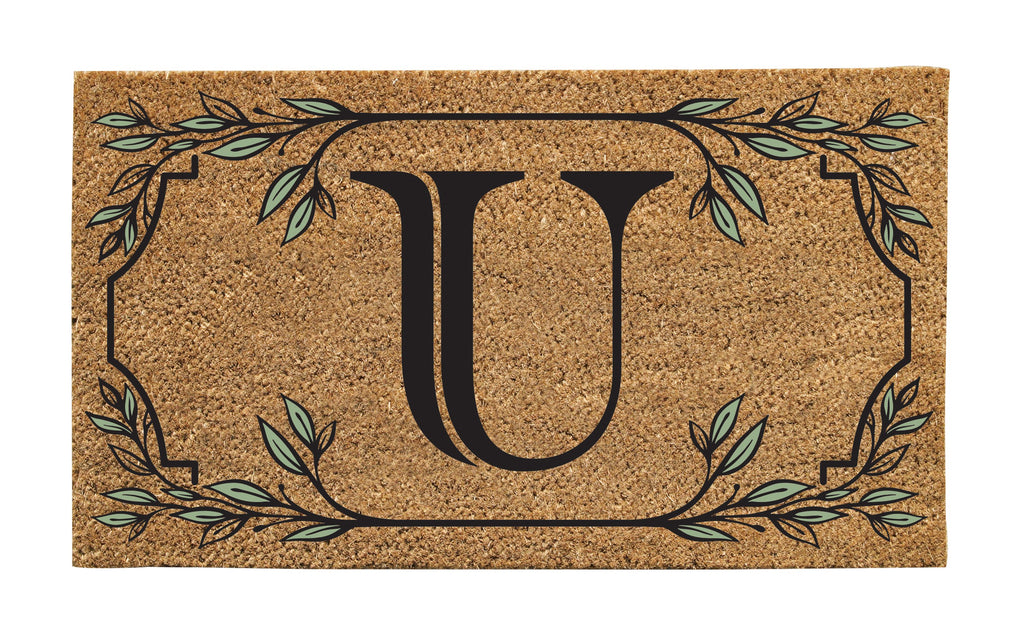 Enhance your entryway with this elegant Monogram Coir Mat featuring the letter 'U'. The natural coir material and intricate leaf border design provide both functionality and style.