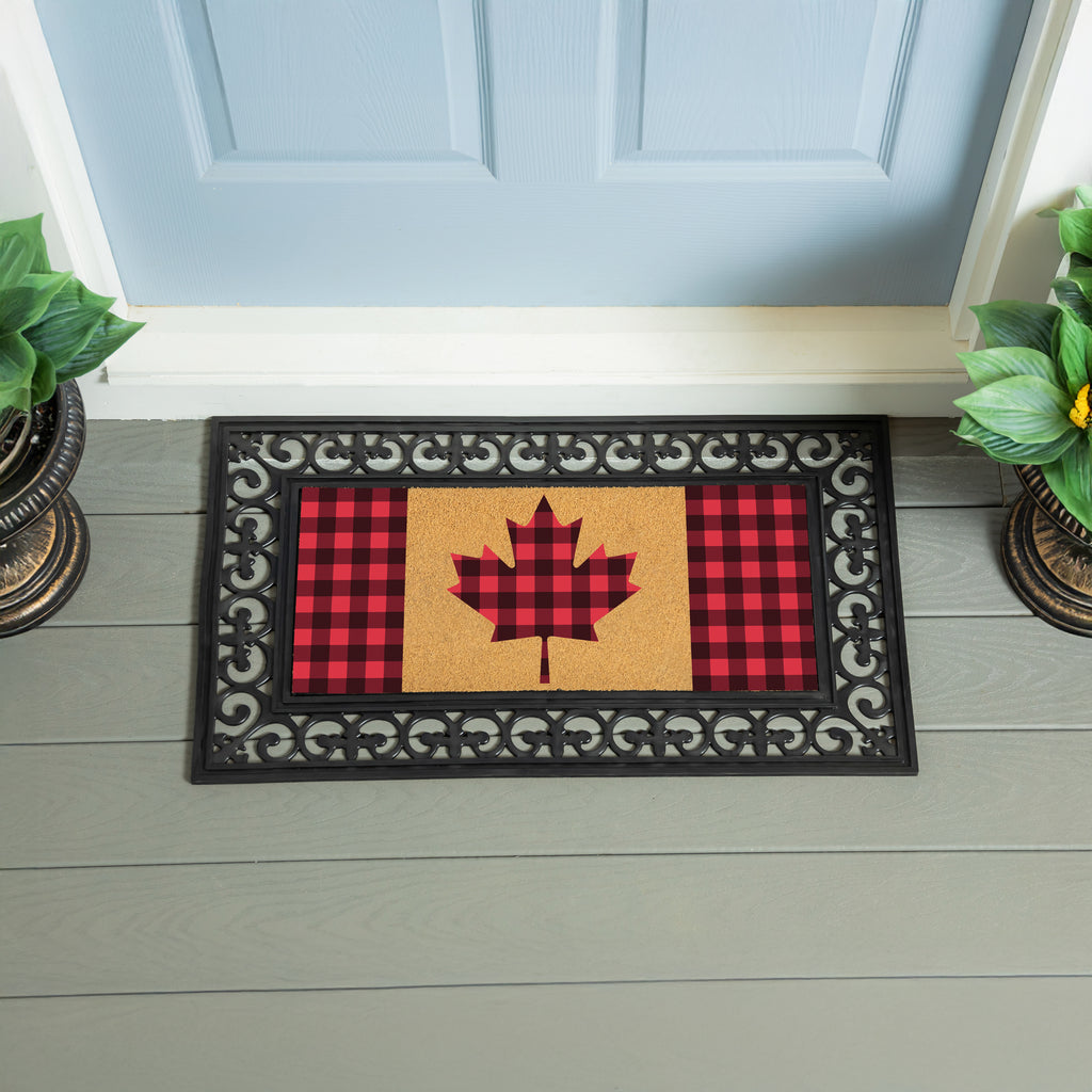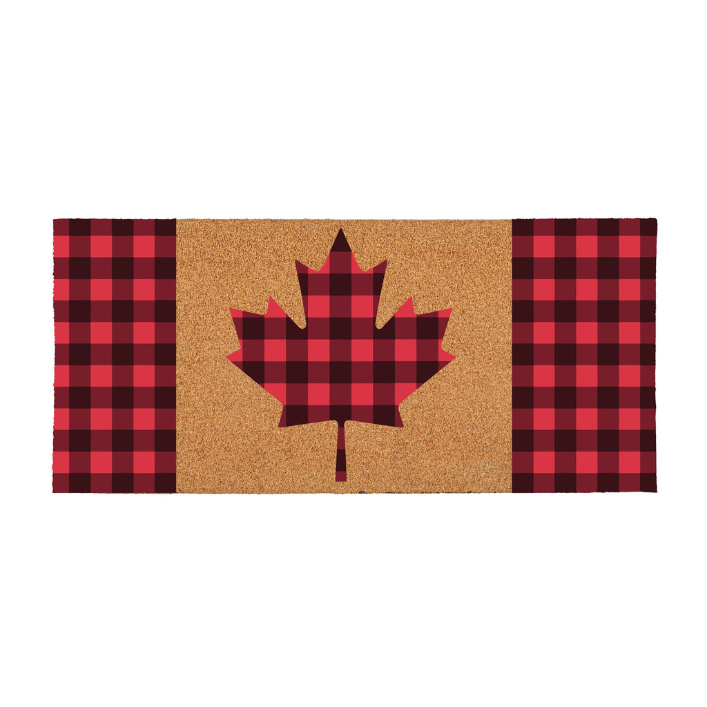 Canada Strong Maple Leaf Flocked Coir Sassafras Switch Mat, Buffalo Check, 22"x10"
