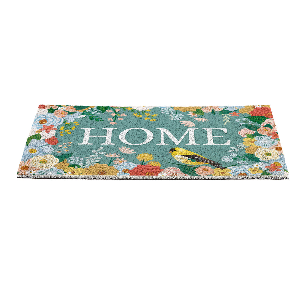 Welcome spring into your home with this vibrant PVC Trapper Mat featuring a charming floral design and a welcoming 'HOME' message.