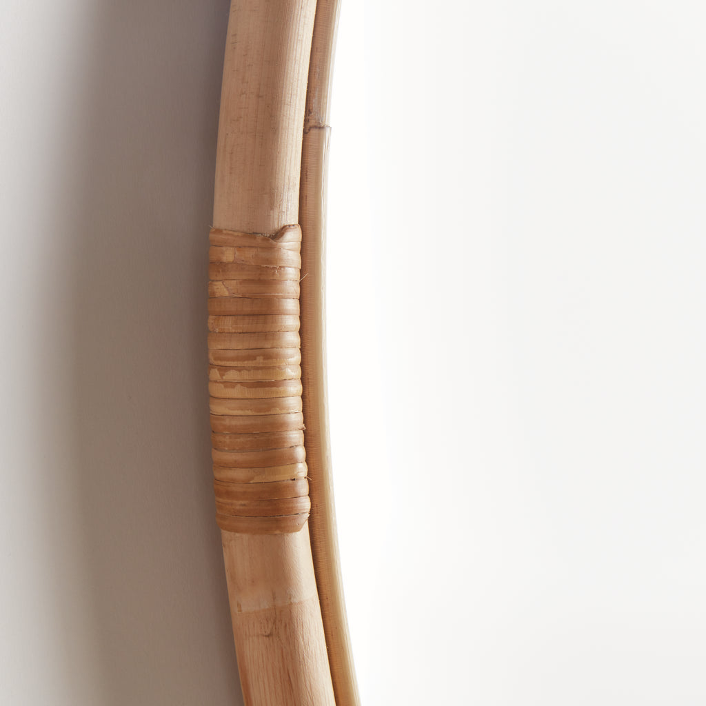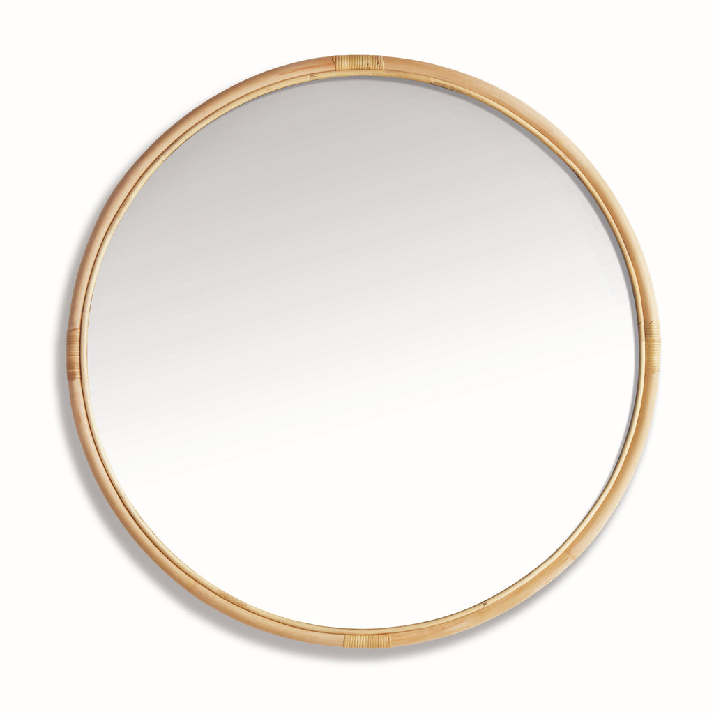 This mirror collection features a clean, utilitarian design with options for both simple rattan and beautiful teak wood frames. Each mirror is crafted with attention to detail, showcasing either a simple rattan or a teak wood frame with a smooth, honed finish. The mirrors are available in various sizes to suit different spaces, making them perfect casual accents for powder rooms, entry hallways, or studies. Designed with a keyhole for hanging, they offer both functionality and style for contemporary and open spaces.