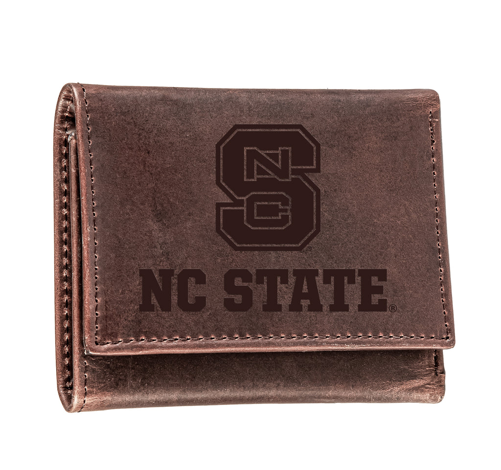 North Carolina State University, Tri-Fold Wallet, Brown, CH, 100% Genuine Leather