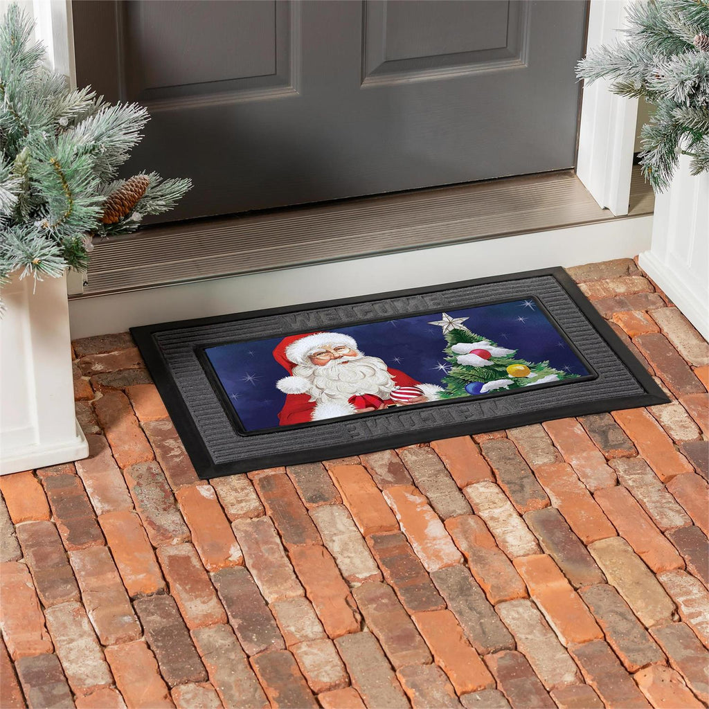 Celebrate the holiday season with the Traditional Santa Sassafras Switch Mat, perfect for adding festive charm to your entryway. Measuring 22 inches by 10 inches, this mat features a delightful Santa Claus design, complete with a Christmas tree adorned with ornaments. Made to fit sassafras insert trays, this mat is ideal for welcoming guests with a touch of holiday cheer. Its durable construction ensures it withstands the winter elements, while the vibrant colors add a joyful touch to your doorstep. Ideal for both indoor and outdoor use, this mat is a versatile addition to your seasonal decor.