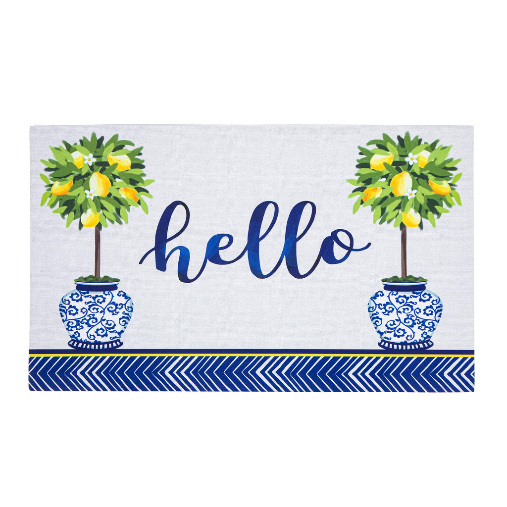 Welcome guests with the charming Sassafras Estate Switch Mat featuring a vibrant lemon tree design. Perfect for adding a fresh and inviting touch to your home, this mat combines functionality with style. Measuring 30 inches in length and 18 inches in height, it fits effortlessly in any entryway. The durable construction ensures longevity, while the slim 0.15-inch profile makes it easy to switch out for seasonal décor. Ideal for both indoor and outdoor use, this mat is a delightful addition to your home.