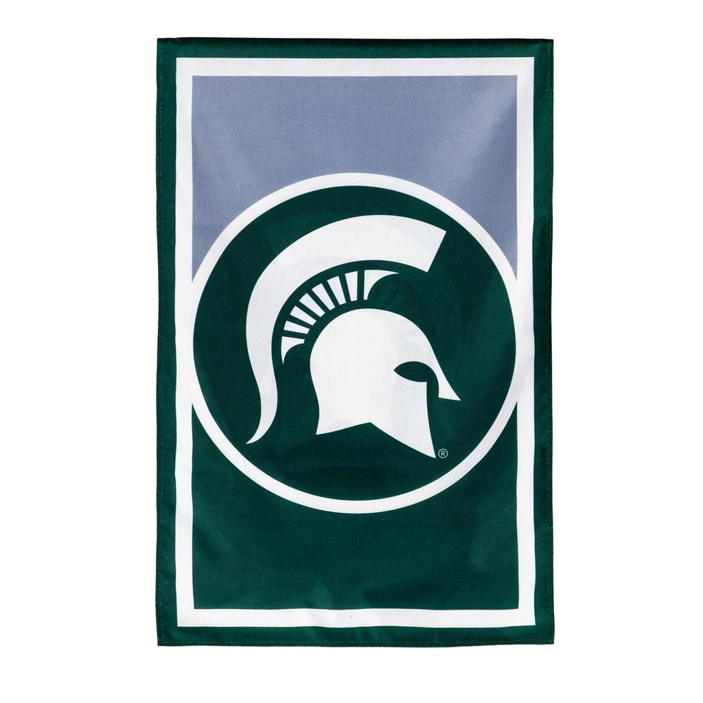 Show your Spartan pride with this Michigan State University burlap flag. Perfect for any fan, this flag is made from durable burlap material, ensuring it withstands the elements while maintaining its vibrant colors. Measuring 28 inches by 44 inches, it's the ideal size for displaying on your porch, garden, or any outdoor space. The iconic MSU Spartan helmet logo is prominently featured, making it a must-have for any true supporter. Easy to hang and designed for outdoor use, this flag will add a spirited touch to your home decor.