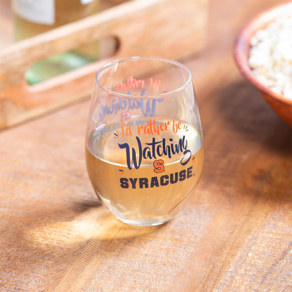 Celebrate your Syracuse University pride with this stylish 17oz stemless wine glass. Perfect for game days, tailgates, or casual gatherings, this glass features bold graphics that proclaim your love for Syracuse. Its stemless design ensures stability, reducing the risk of spills. The glass comes in a decorative box, making it an ideal gift for alumni and fans. Whether you're enjoying a glass of wine or displaying it as a collectible, this glass is a must-have for true Syracuse enthusiasts.