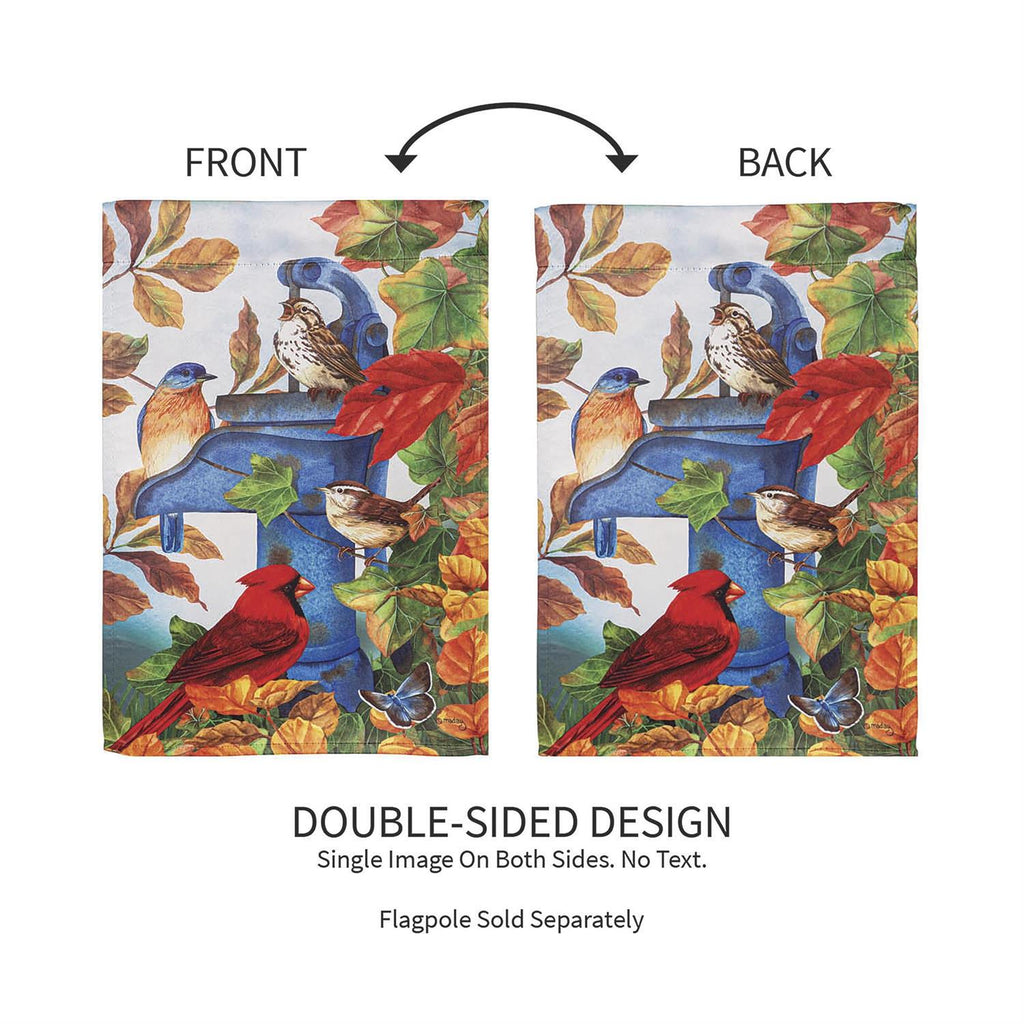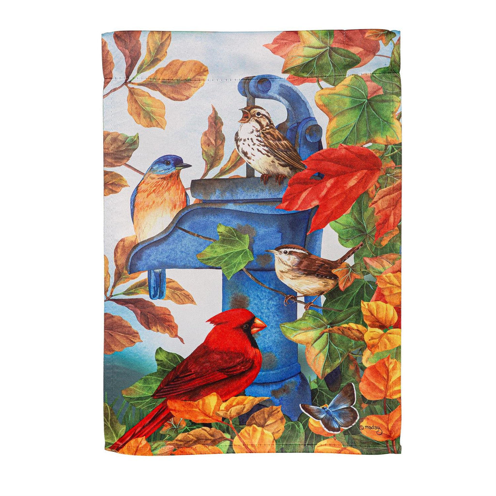 Enhance your outdoor space with the 'Where Birds Gather Suede House Flag', a charming addition to any garden or porch. Measuring 29 inches in length and 43 inches in height, this flag is crafted from durable suede, ensuring vibrant colors and longevity. The design features a variety of birds perched among autumn leaves, providing a warm and inviting atmosphere for your home. Ideal for fall decorating, this flag adds a touch of nature-inspired beauty and elegance to your outdoor décor.