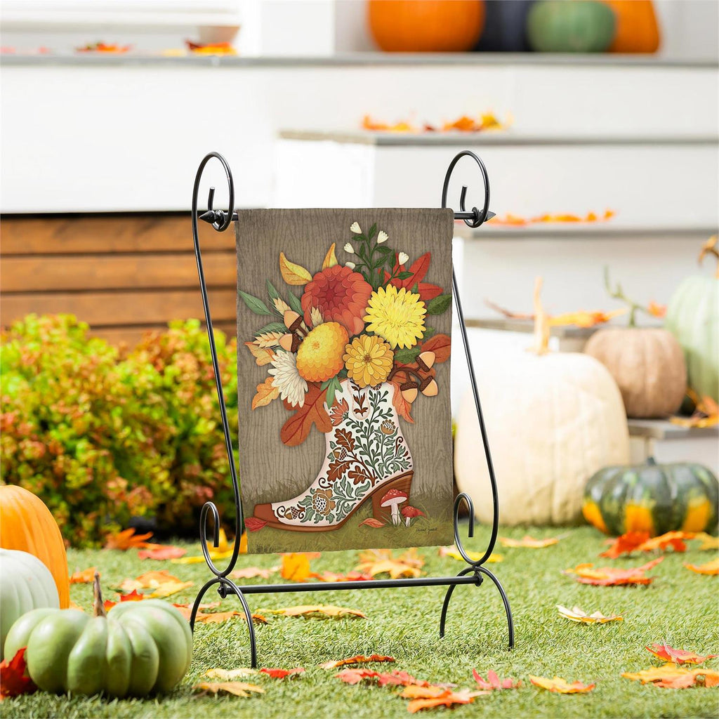 Give any garden or outdoor space an extra special touch with this stunning flag. With its cozy, seasonal design, this flag welcomes friends and family to the home in style. Flag is crafted of medium-weight suede fabric made from recycled plastic that provides a soft and durable texture. Artwork is heat transferred onto the sun-blocking material so that it is easily viewed from both sides. The weatherproof flag will not fray or fade with continued outdoor use. This flag features a sleeve for use with any standard flagpole or stand, sold separately.