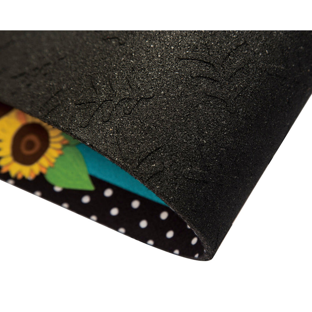 Elevate your entryway with the Sunflower Watering Can Sassafras Switch Mat. This charming mat features vibrant sunflowers and a classic red watering can design, perfect for adding a cheerful touch to your doorstep. Measuring 22 inches in length and 10 inches in width, it's an ideal size for any entrance. The mat's low-profile design ensures it fits seamlessly under most doors. Made from durable materials, it withstands everyday foot traffic while welcoming guests to your home.
