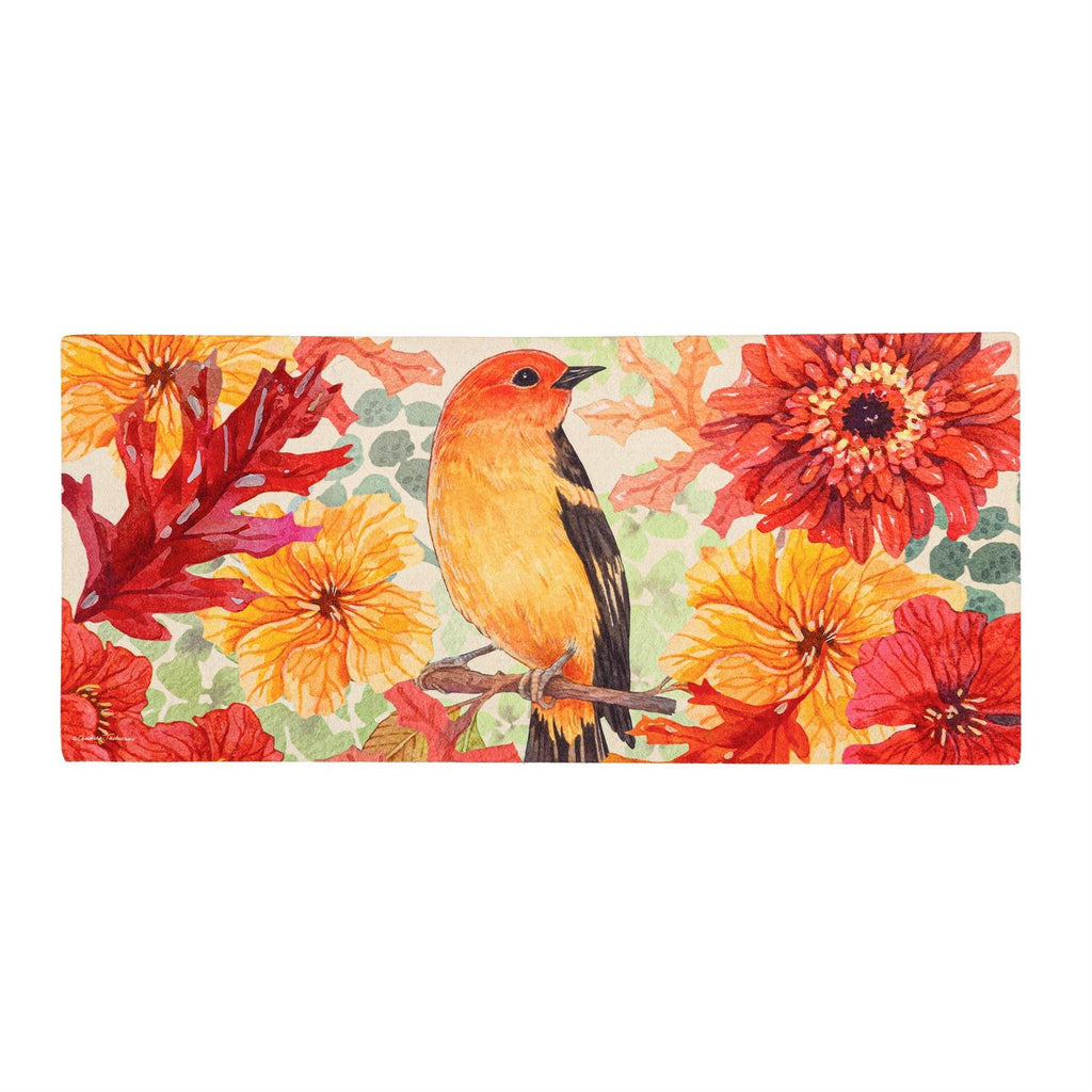 Say hello to fall with this sassafras switch mat. This mat features a sweet feathered friend sitting on a tree branch and surrounded by beautiful fall flowers. Part of our bestselling Sassafras Mat collection, this mat insert is crafted from durable material with a rubber backing and is designed to fit neatly within any of our Sassafras bases and trays. Designs are sublimated onto the outdoor-safe material using fade resistant inks. Perfect for indoor or outdoor use, these versatile Sassafras mats successfully trap dirt while making a stylish statement.