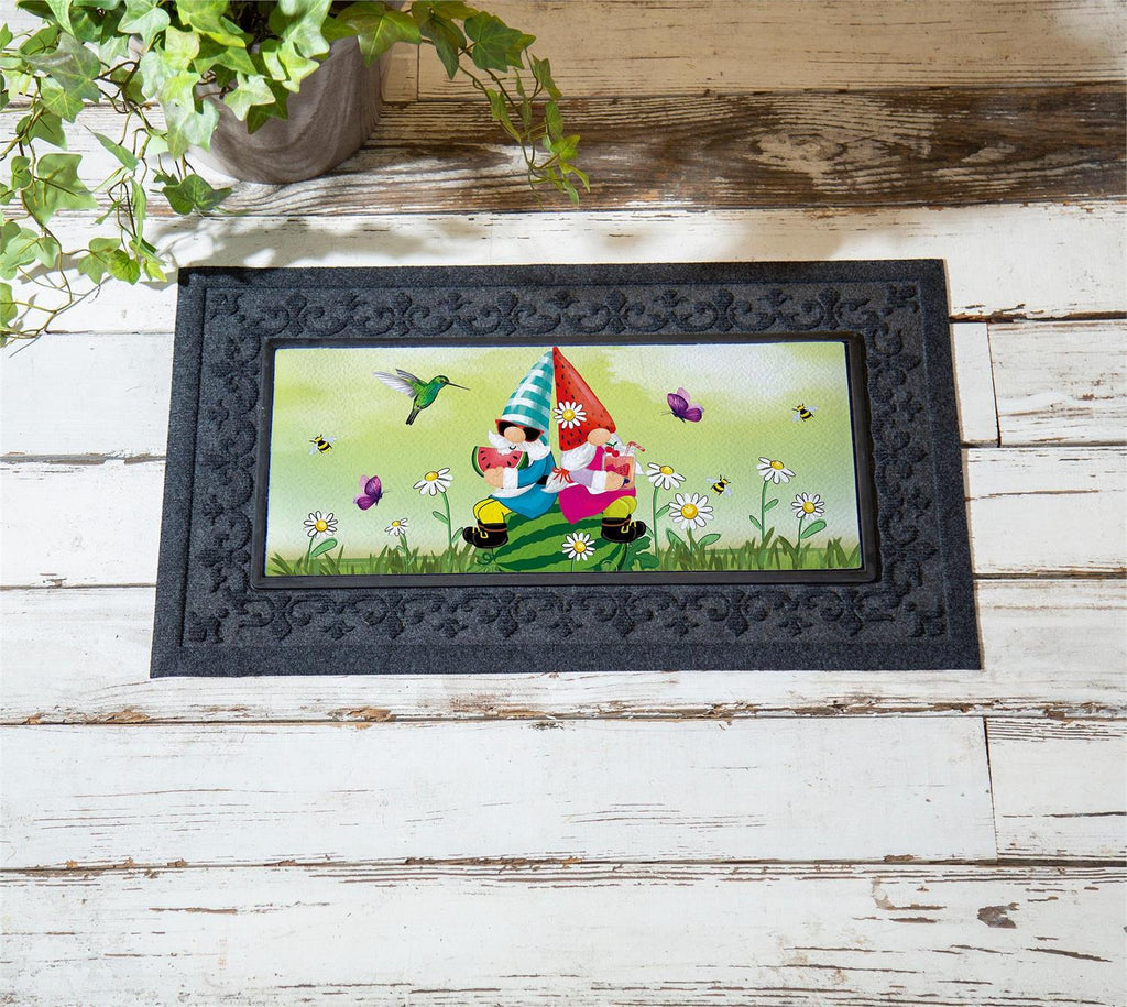 Give guests a warm welcome with this Sassafras Switch Mat. It features a beautiful design that’s sure to make friends and family smile. Crafted from heat-sublimated polyester with a rubber backing, this versatile mat is designed to fit perfectly within Evergreen's switch doormat bases. The mildew resistant mat is ideal for indoor or outdoor use and features a skid-resistant backing to help keep it in place. This welcoming mat will freshen up your stoop season after season while ensuring your home stays debris-free. For stains, simply spot clean with soap and warm water.