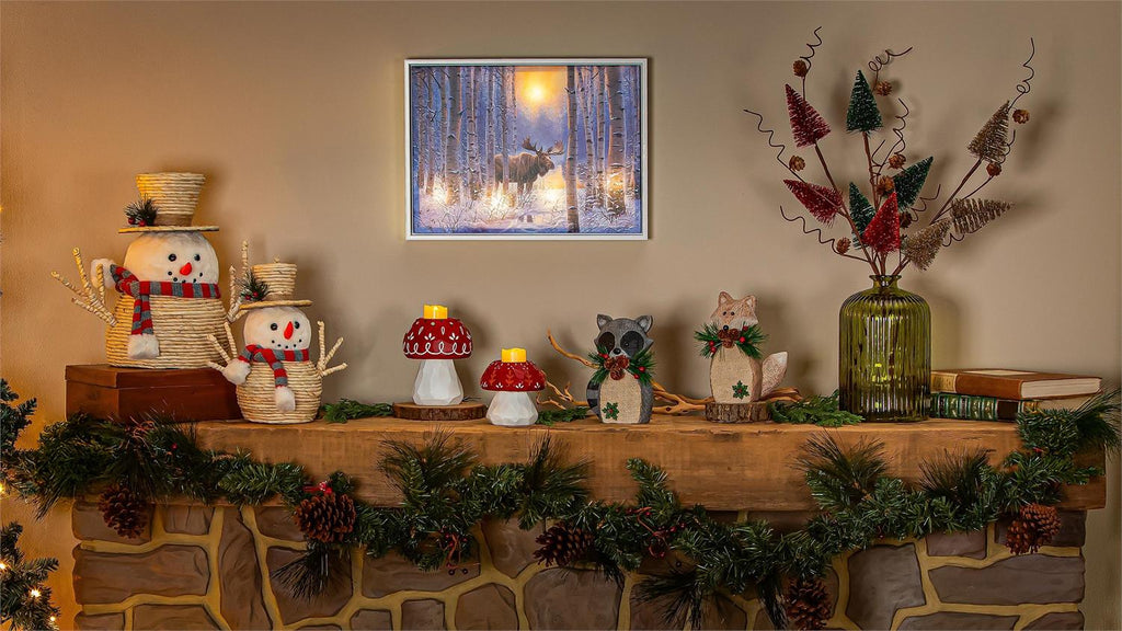 Transform your space with the enchanting Woodland Storybook Wall Decor. This LED canvas art piece captures the serene beauty of a moose in a snow-covered forest, illuminated to create a warm, inviting glow. The white frame complements the wintery scene, making it perfect for seasonal decoration or year-round enjoyment. Measuring 16 inches long by 12 inches high, this decor fits seamlessly into various spaces, adding a touch of nature-inspired tranquility to your home.