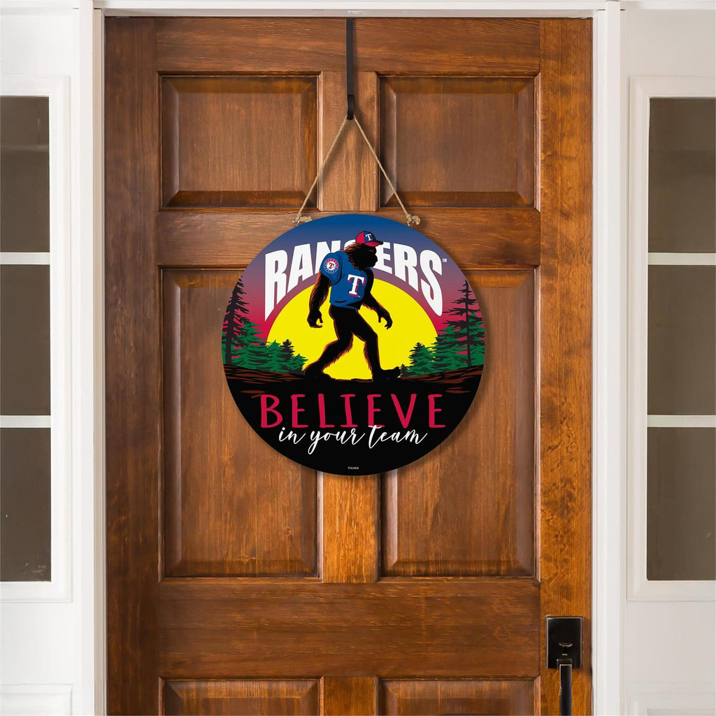 Show your team spirit with the Texas Rangers Bigfoot Round Door Décor. Measuring 18 inches in diameter, this eye-catching piece is perfect for any Rangers fan. Featuring a playful Bigfoot silhouette against a vibrant backdrop, it's designed to grab attention. The durable rope makes it easy to hang on any door or wall, adding a touch of character to your space. Whether for game day or everyday decoration, this piece is a fun way to express your loyalty.