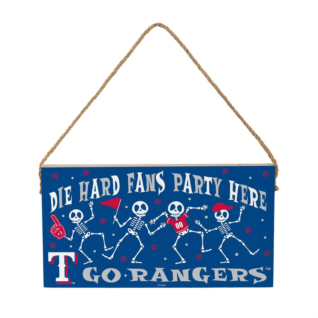 Celebrate the spooky season with a baseball twist using this Texas Rangers Halloween Wood Wall Sign. Perfect for die-hard fans, this sign features playful skeletons in a festive display, enhancing both Halloween spirit and team pride. Measuring 6x11 inches, it's crafted from quality wood and comes with a convenient rope for easy hanging. Ideal for decorating your home, office, or fan cave, this sign brings a unique blend of sports enthusiasm and holiday fun to any space.