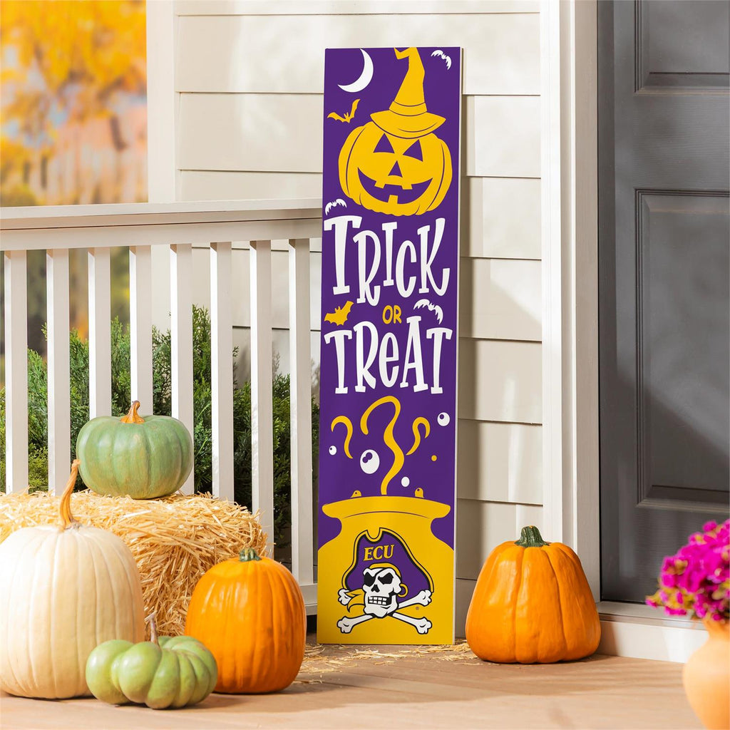 Celebrate Halloween with school spirit using the 46" Double Sided Leaner featuring East Carolina University. This vibrant porch leaner is perfect for adding a festive touch to your home’s entrance. With a playful Halloween-themed design on one side and ECU pride on the other, it blends seasonal fun with collegiate enthusiasm. Crafted for durability, this leaner is ideal for outdoor use on your porch or entryway. Its compact dimensions ensure it fits seamlessly into any space, providing a welcoming ambiance for trick-or-treaters and visitors alike.