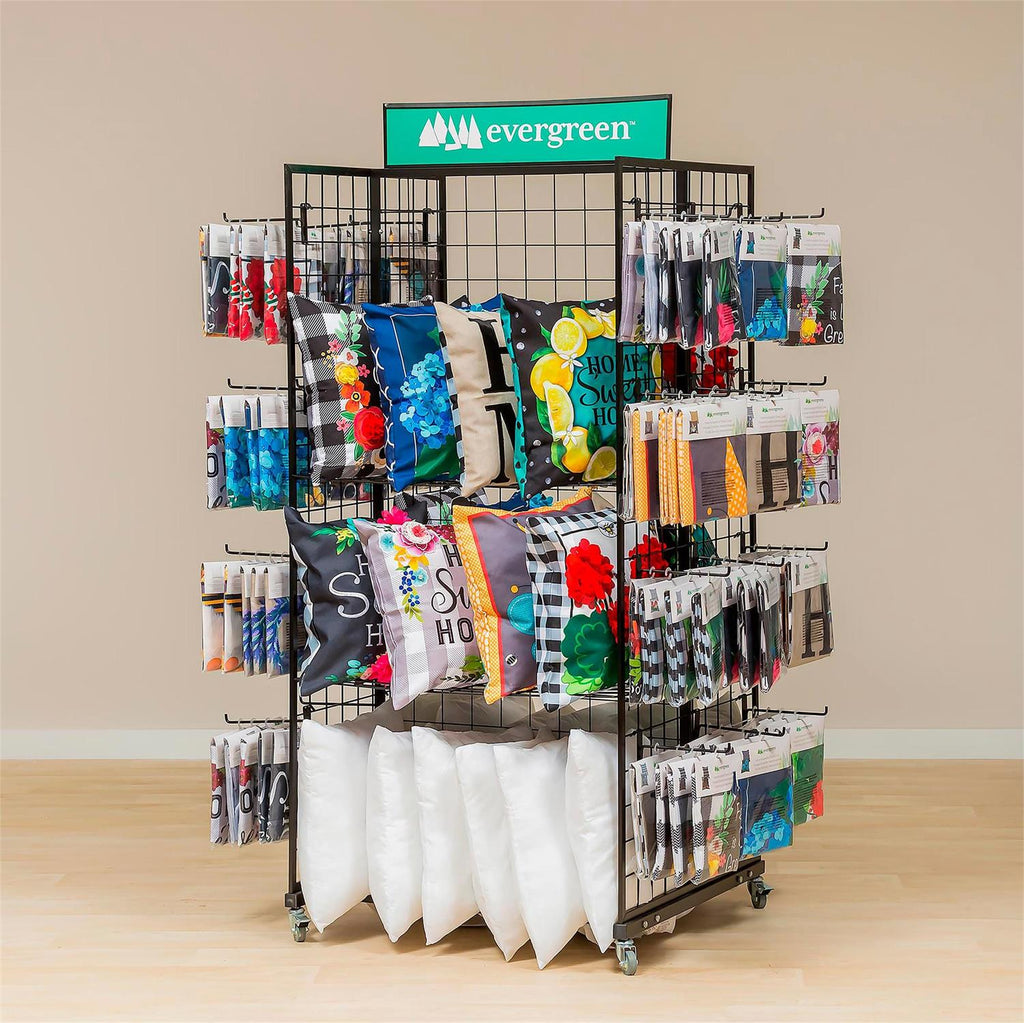The H-Shape Metal Grid Display is a versatile and sturdy solution for showcasing flags and various decorative items. With dimensions of 30.0 inches in length and width, and standing 59.61 inches tall, this display is perfect for retail environments. Its metal grid construction provides durable support, while the H-shape design maximizes visibility from multiple angles. Equipped with hooks for easy hanging, this display is ideal for seasonal promotions, home décor items, or garden accessories. The mobile base with wheels ensures easy repositioning within your store.