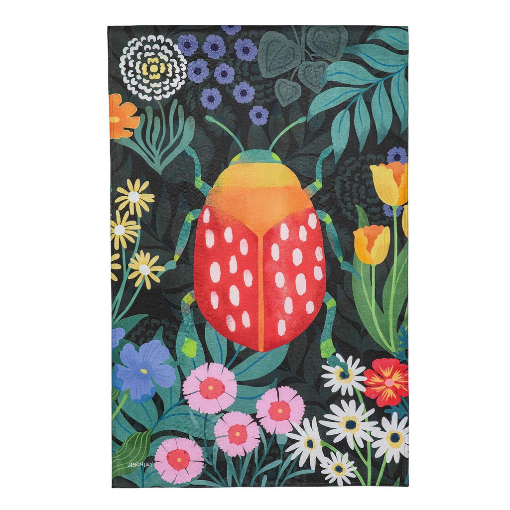 This eye-catching flag adds an extra special touch to any garden or outdoor space. With its vibrant, floral ladybug design, this flag welcomes friends and family in beautiful style. It’s made of medium-weight, soft burlap fabric that's made from recycled plastic that has the look and feel of real burlap. Artwork is heat transferred onto both sides of the textured fabric to create a natural, crafted look. The flag is durable and weatherproof and will not fade or fray after continued display. This flag features a sleeve for use with any standard flagpole or stand, sold separately.