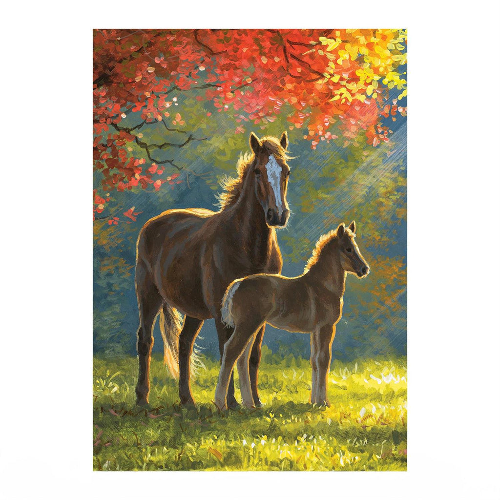 Celebrate the beauty of nature and family with this exquisite Family Time Suede Garden Flag. Perfect for adding a warm, inviting touch to your outdoor space, this flag features a heartwarming image of a mare and foal under a canopy of vibrant autumn leaves. Made from durable suede, it ensures lasting beauty through the seasons. Its 12.5 x 18-inch size makes it ideal for any garden, patio, or yard. Enhance your home’s curb appeal with this charming and colorful accent.