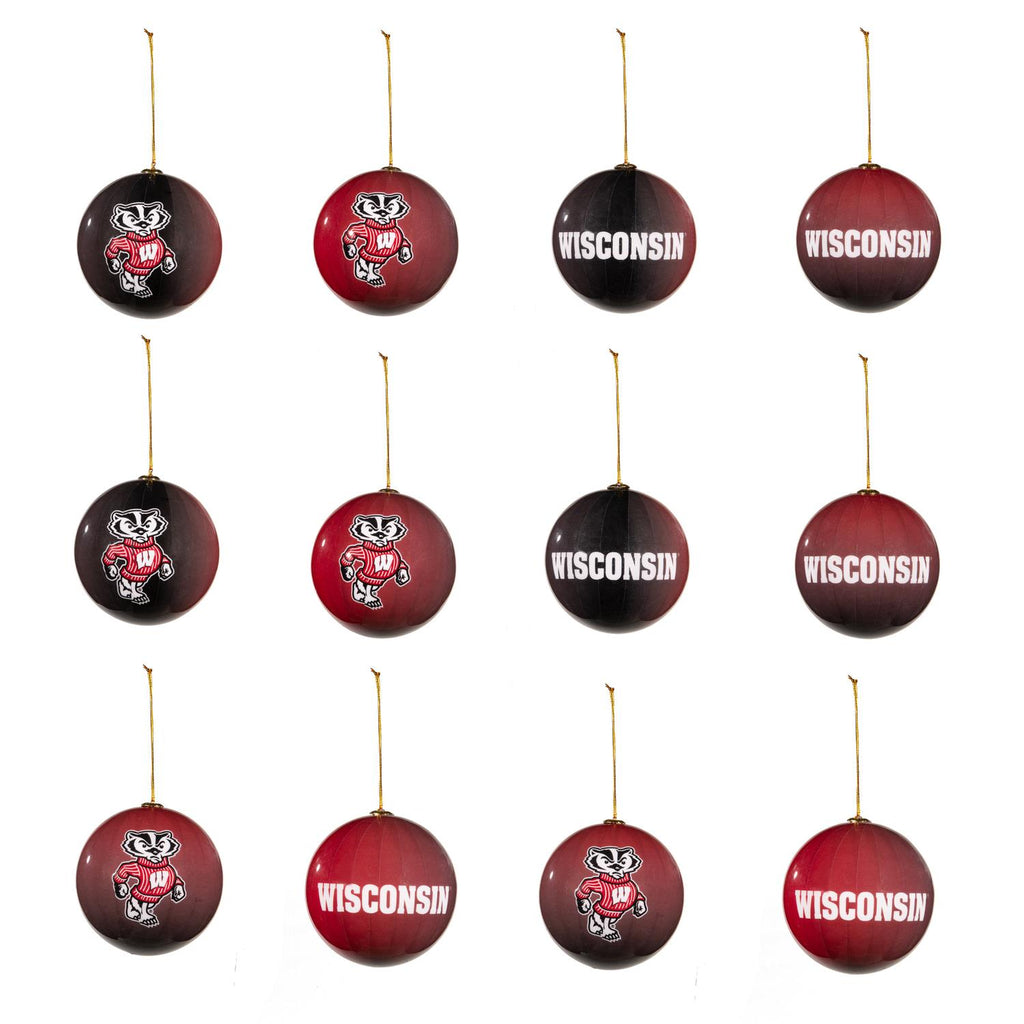 Celebrate your Badger pride with this 12-piece ornament set featuring the University of Wisconsin-Madison's iconic colors and logos. Perfect for showcasing your school spirit during the holiday season or any time of year, these ornaments add a festive touch to your décor. Each ornament is designed in vibrant red and black, displaying the university logo and name. With a convenient size, they fit seamlessly into any decorative arrangement, whether on a tree, garland, or wreath. Durable and lightweight, these ornaments are easy to hang and store, making them a delightful addition to your collection.