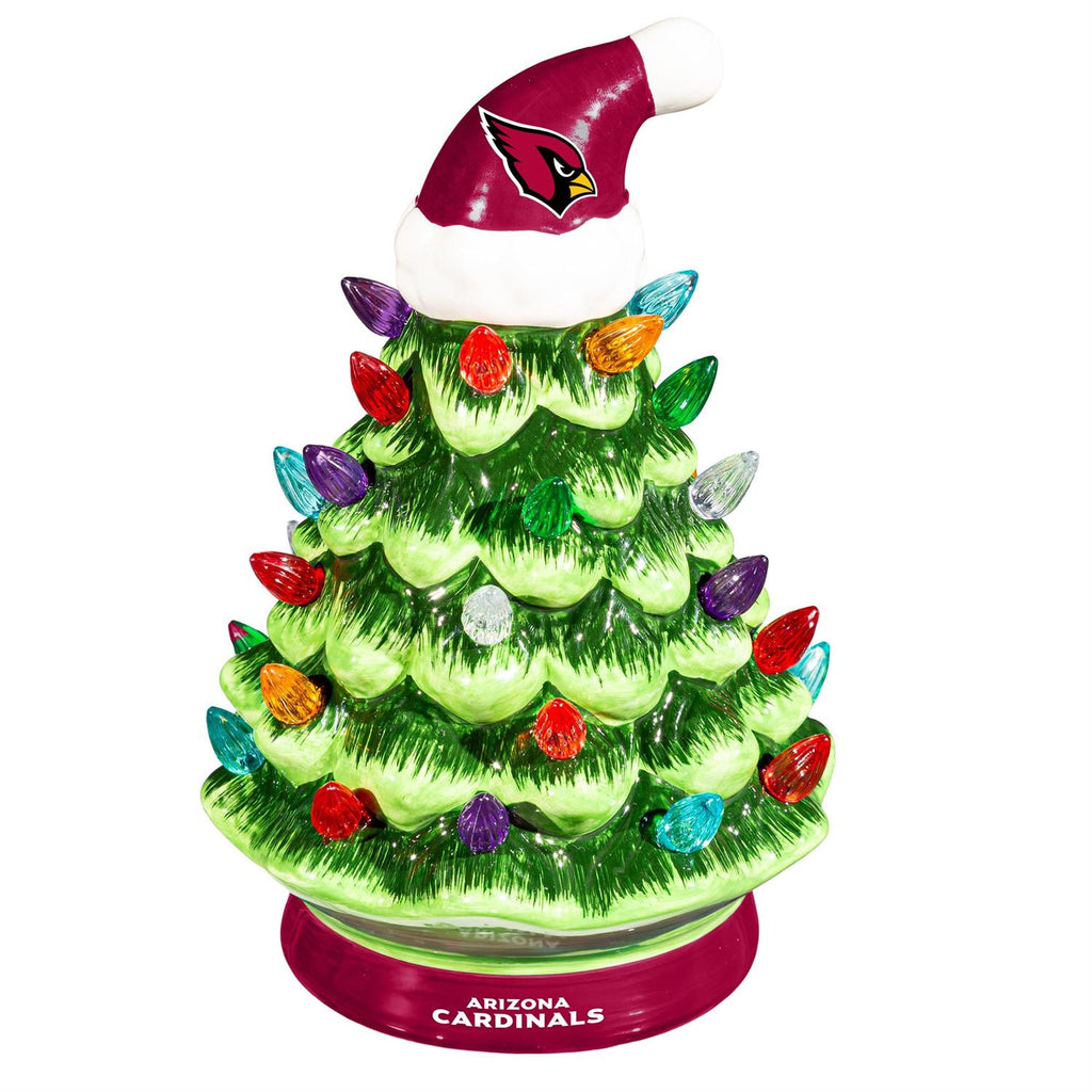 Celebrate the holiday season with a touch of team spirit using this 8-inch LED Ceramic Christmas Tree. Perfect for fans, this table décor piece features a vibrant design with multi-colored lights and a classic tree shape. Its compact size makes it ideal for desks, mantels, or any cozy corner in your home. The tree is topped with a festive hat, adding a cheerful and sporty touch. Illuminate your space with team pride while enjoying the holiday ambiance this charming piece brings.