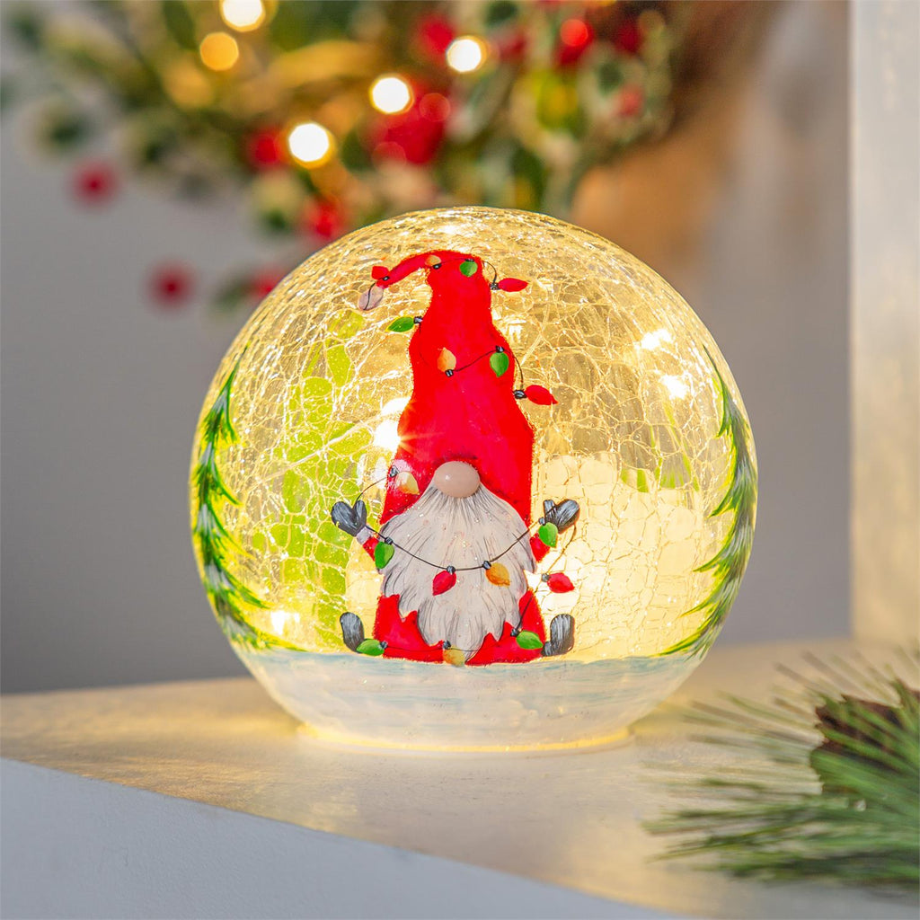 5" LED Hand Painted Crackled Glass Globe, Gnome