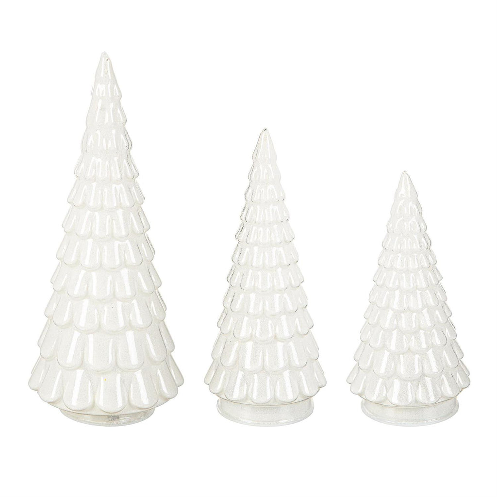 Illuminate your holiday season with this enchanting LED Glass Tree Table Decor Set. Perfect for creating a warm and inviting atmosphere, each tree stands at a height of 10 inches and features a beautiful white glass construction that elegantly diffuses the LED lights within. The intricate design resembles a classic winter tree, making it an ideal centerpiece for your festive dining table or mantelpiece. Whether used alone or grouped together, these decorative pieces add a touch of magic to any room. Battery-operated for easy placement, they are a convenient and stylish addition to your seasonal décor.