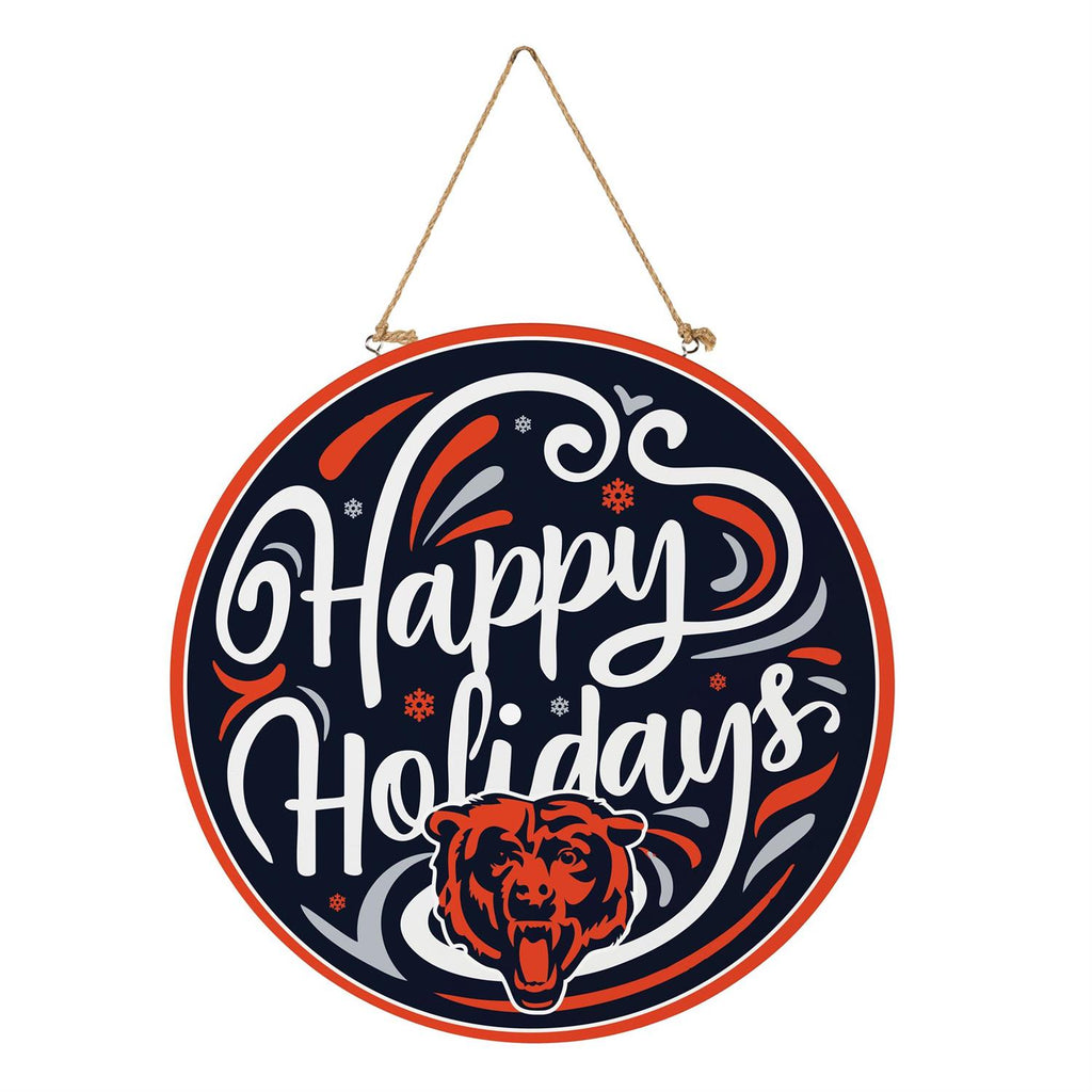 Celebrate the festive season with a touch of team spirit using the Chicago Bears Holiday Round Door Décor. This vibrant 18x18 inch wall décor piece is perfect for fans eager to showcase their love for the Bears while embracing holiday cheer. Featuring a classic 'Happy Holidays' design in bold colors, it’s crafted to enhance any indoor space with team pride. The included hanging rope makes it easy to display on doors, walls, or any desired area. Ideal for adding a personal touch to your holiday gatherings or as a thoughtful gift for fellow fans.