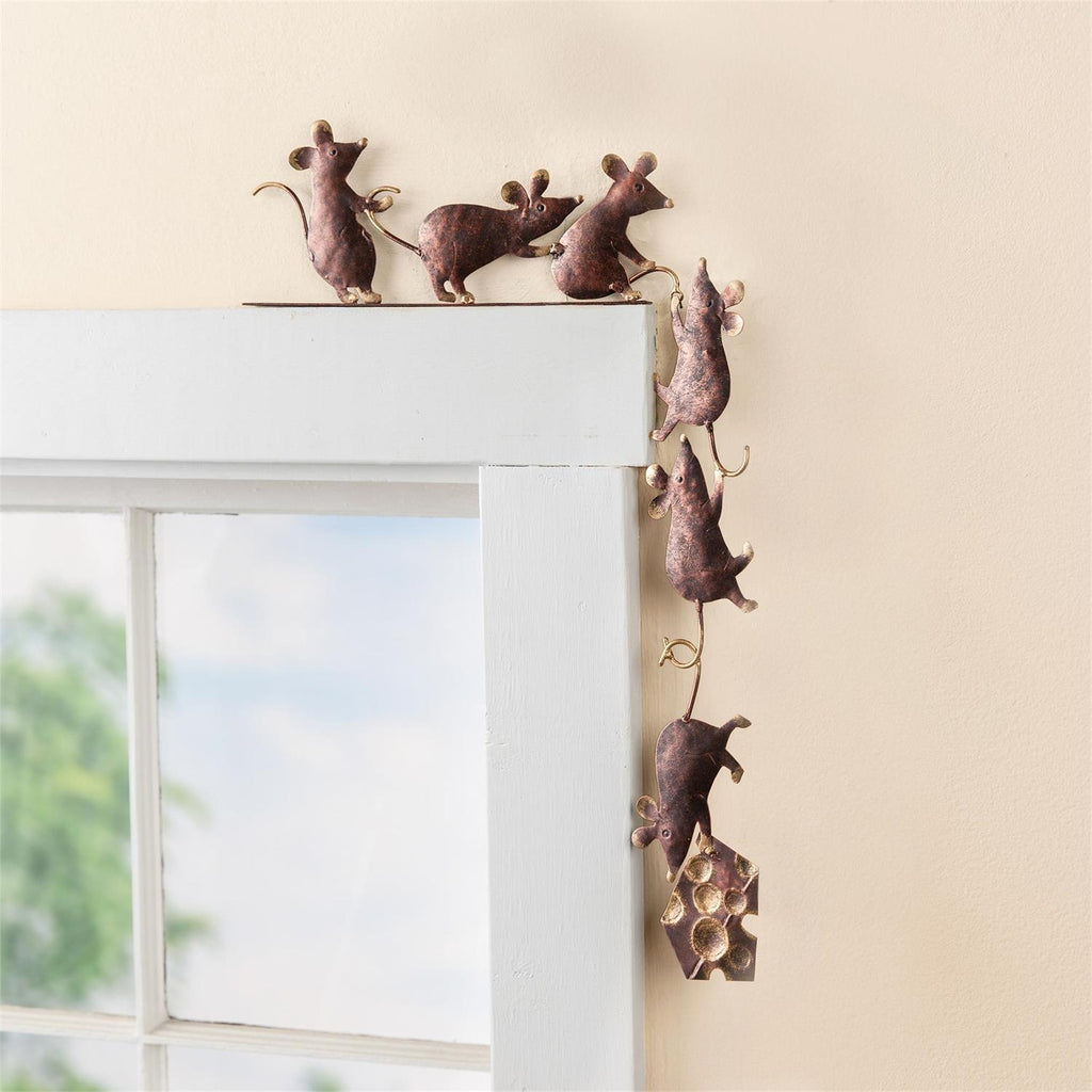 Welcome guests with whimsy and charm with this adorable Mice Metal Door Crawler. This delightful accessory adds a playful touch to any entryway, inviting visitors to step into the home. Crafted with attention to detail, this door crawler features mice trying to sneakily steal some cheese. Perfect for both indoor and outdoor use, this charming accent brings smiles to faces and warmth to hearts. Let these lovable critters greet guests with joy every time the door is opened.
