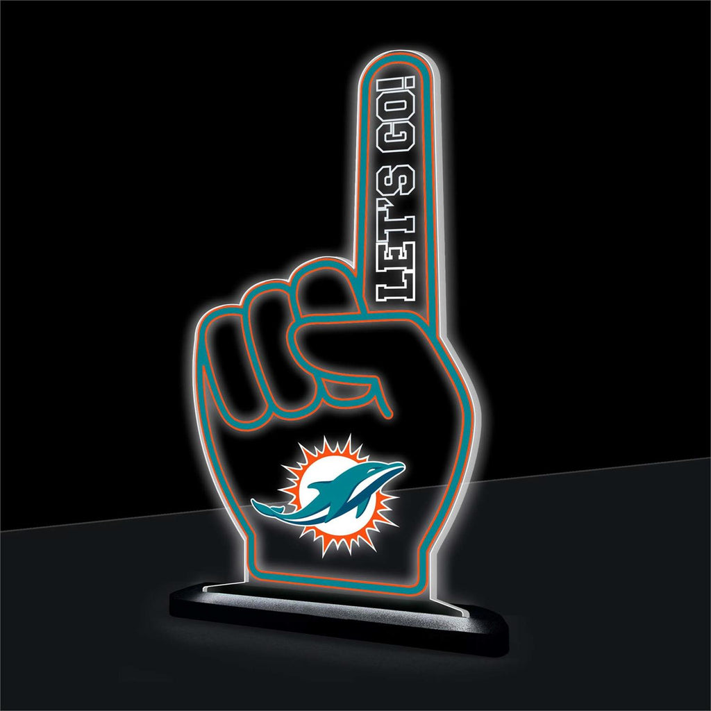 Illuminate your space with team spirit using the Miami Dolphins NFL Football Foam Finger Desklite LED Decor. Perfect for any fan, this vibrant LED display features the iconic foam finger design, complete with the Dolphins logo. Measuring 10 inches in length and 7 inches in width, it fits perfectly on desks or shelves. The energy-efficient LED lighting adds a striking glow, making it an eye-catching piece for game days or everyday décor. Enhance your home or office with this unique piece of Miami Dolphins pride.