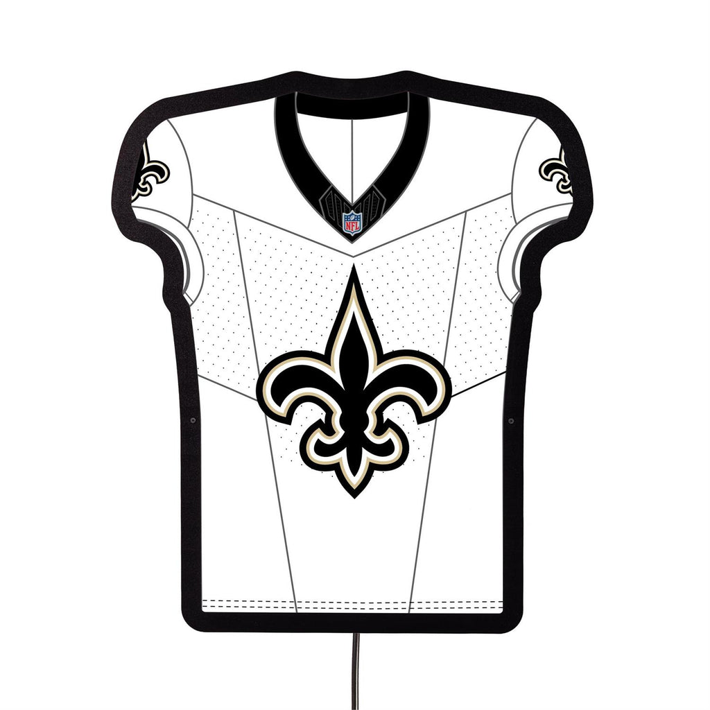 Illuminate your space with team spirit using the New Orleans Saints NFL Football Jersey Edgelite LED Decor. This striking wall piece, modeled after the iconic jersey, features a sleek LED outline that highlights the team's emblem in vibrant detail. Measuring 23 inches in both length and width, this lightweight and slim design is perfect for any room. With its energy-efficient LED technology, you can showcase your team pride while keeping power consumption low. Ideal for game rooms, bedrooms, or offices, this decor piece brings a touch of the Saints' spirit into your home.