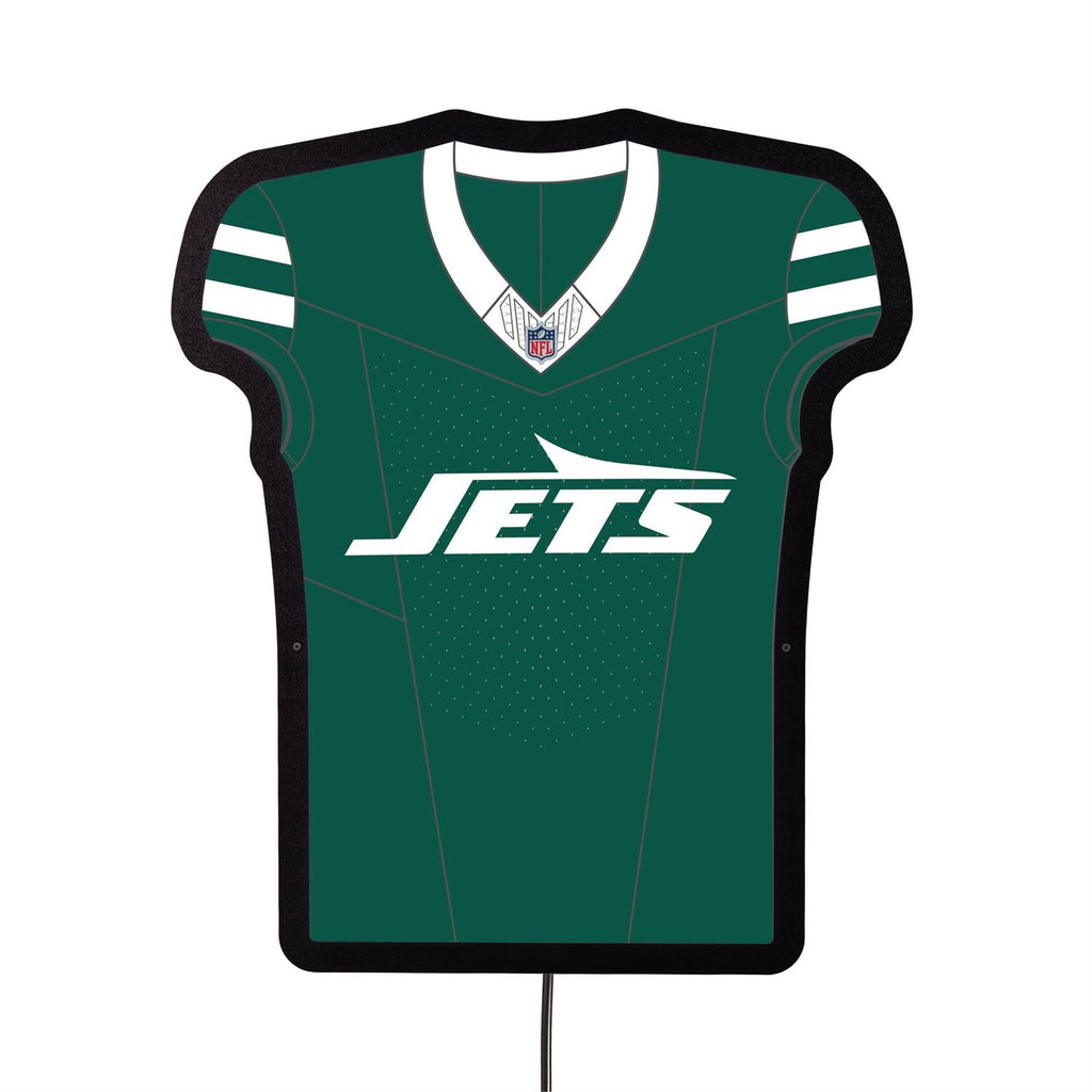 Illuminate your space with the New York Jets NFL Football Jersey Edgelite LED Decor. This eye-catching wall décor piece is perfect for any die-hard Jets fan. Measuring 23 inches square and only 0.38 inches thick, it features a detailed jersey design with vibrant green color and iconic logo. The LED lighting adds a modern touch, creating a dynamic display that stands out in any room. Ideal for game rooms, man caves, or offices, this decor piece is both stylish and functional, making it a must-have for showcasing your team spirit.