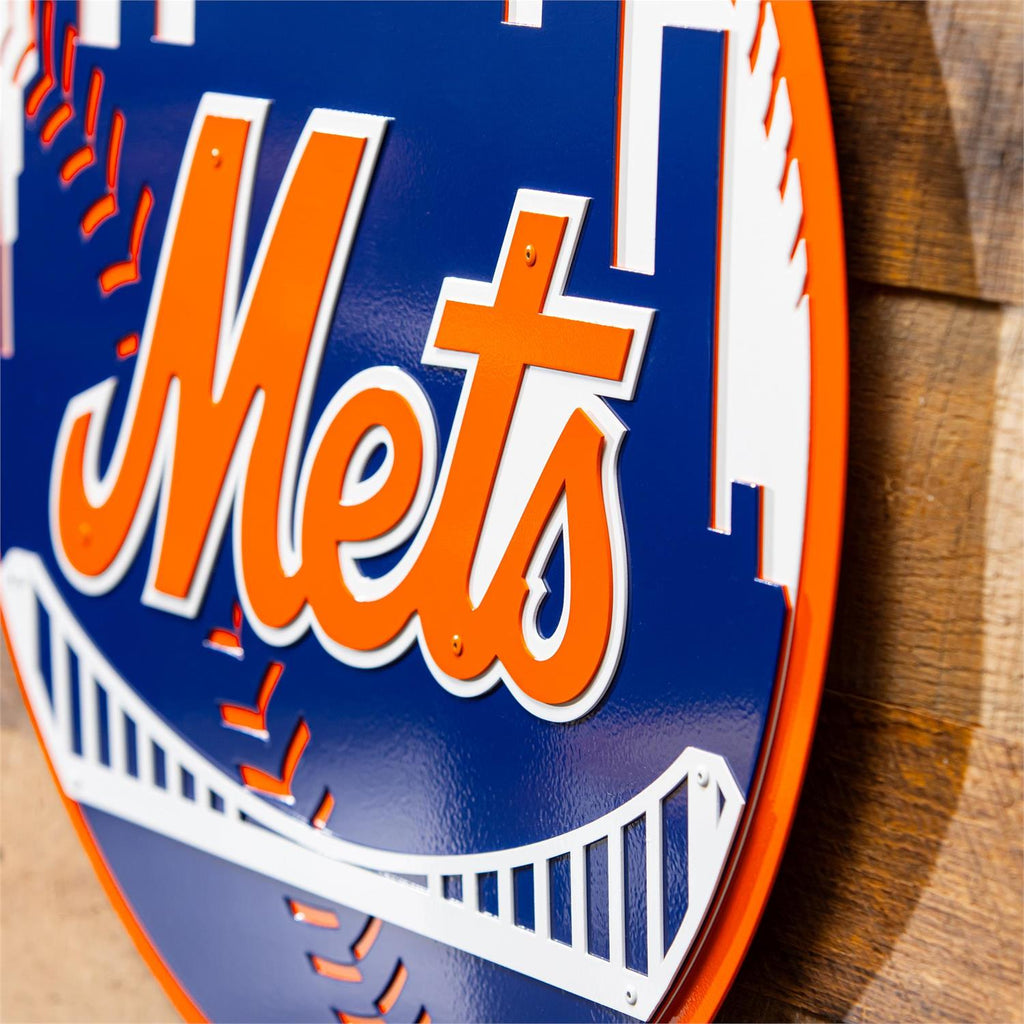 Celebrate your love for the New York Mets with this striking layered metal wall art. Measuring 15.5 inches in length and 11.5 inches in width, this piece is perfect for displaying in your home, office, or fan cave. The vibrant team colors and dynamic design capture the spirit of the Mets, making it a must-have for any fan. Constructed from durable metal, this sign is built to last, adding a touch of team pride to your space. Its sleek profile allows for easy hanging and integration into any décor style.