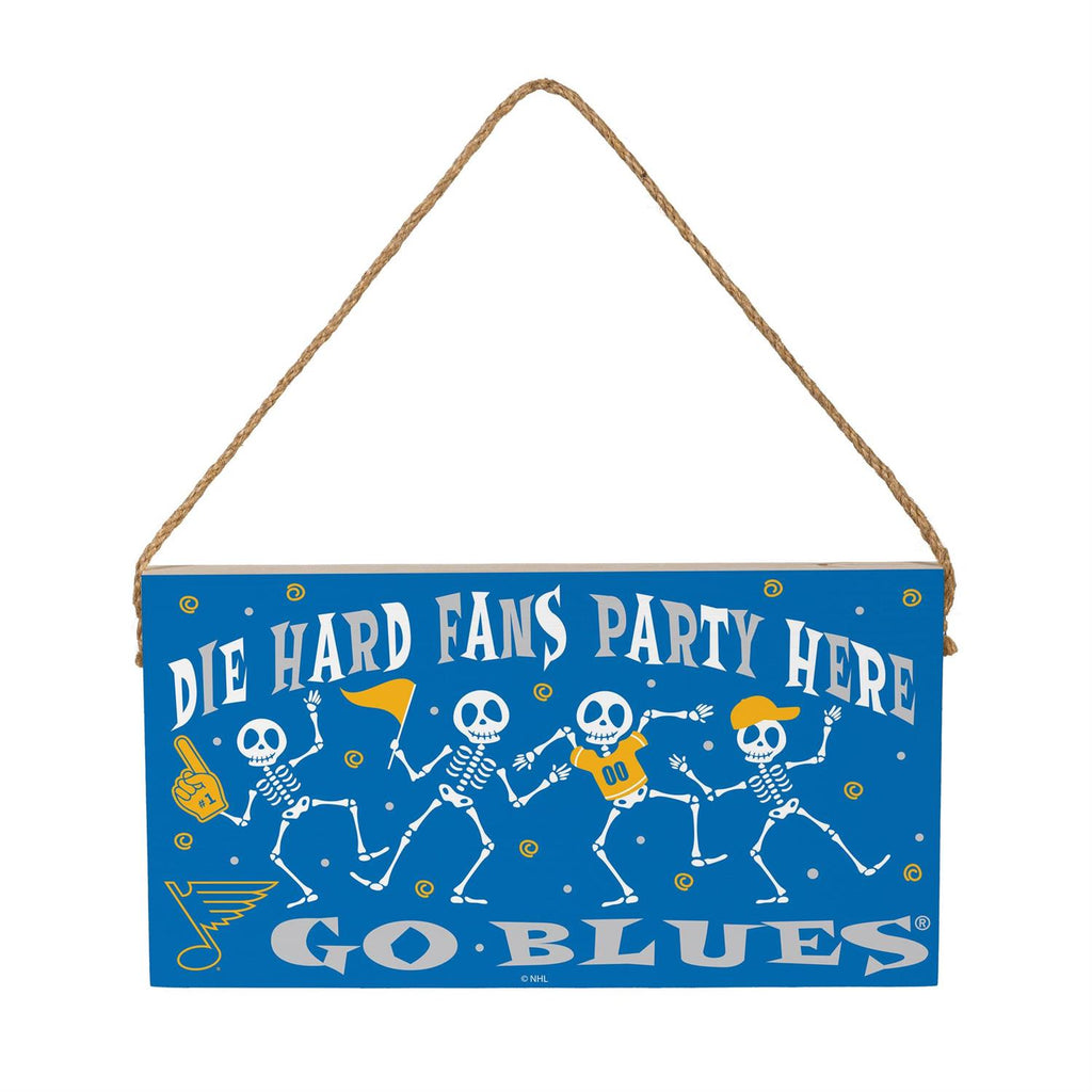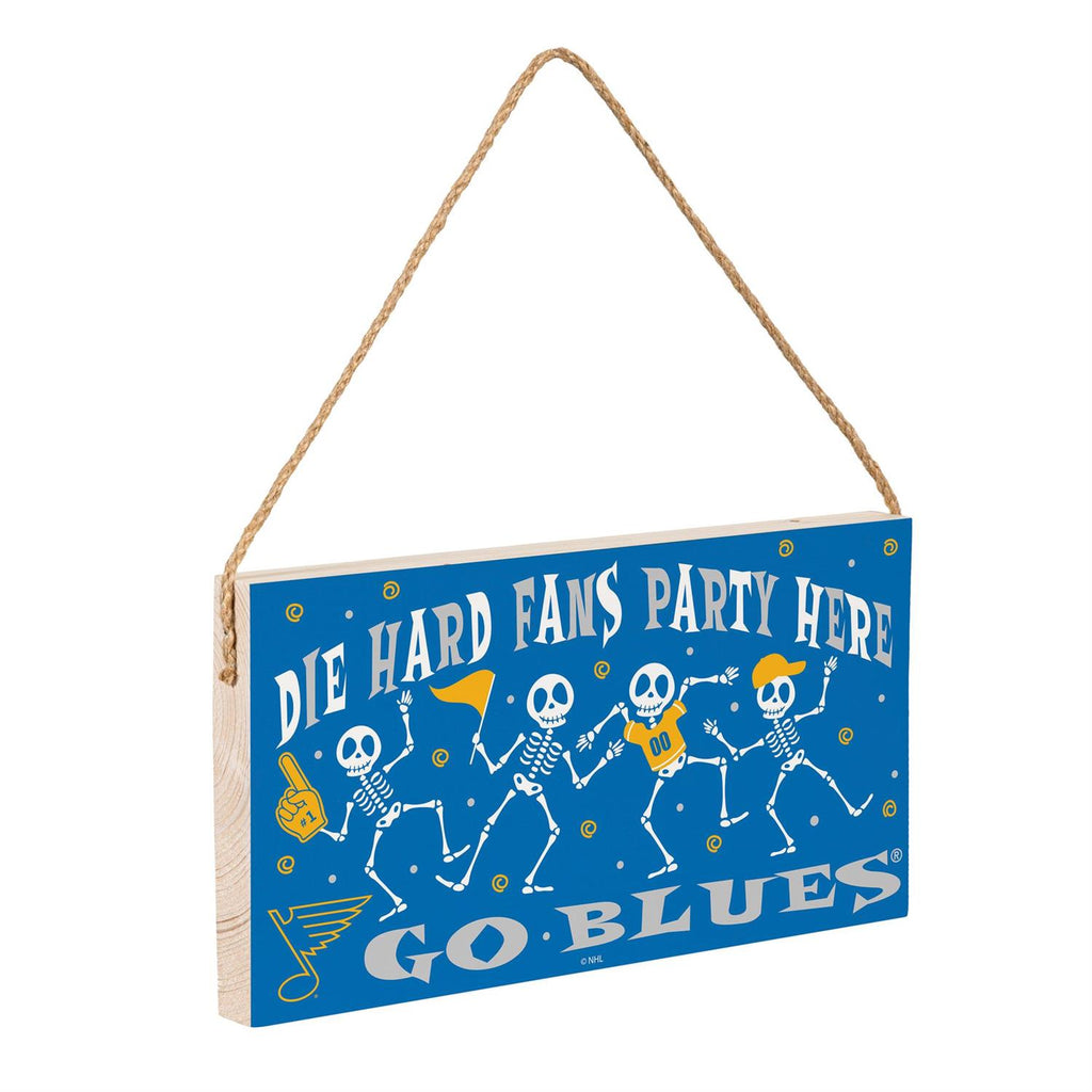 Celebrate Halloween and your love for the St. Louis Blues with this vibrant wood wall sign. Measuring 6x11 inches, this sign is perfect for adding a festive touch to your home or office. Featuring playful skeletons and bold team colors, it’s an ideal decoration for avid fans who enjoy a good party. Hang it easily with the attached rope and show your team spirit in a unique way. Perfect for Halloween gatherings or as a fun seasonal gift for fellow Blues supporters.