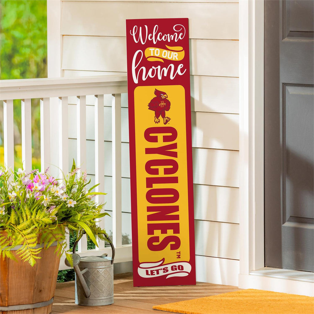 Embrace the spirit of Halloween with this double-sided porch leaner featuring Iowa State University themes. Perfect for adding a festive touch to your porch, this leaner combines school pride with seasonal charm. Measuring 46 inches, it fits perfectly against your doorway or porch wall, offering a vibrant display of Halloween and collegiate enthusiasm. Made from durable materials, this leaner is designed to withstand the elements, ensuring it remains a staple of your seasonal décor for years to come. The bold colors and playful design are sure to catch the eye of trick-or-treaters and guests alike.