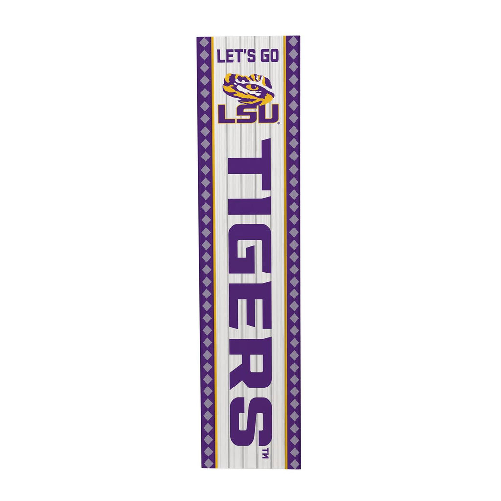 Showcase your LSU pride this holiday season with this 46-inch double-sided porch leaner. Perfect for any Tigers fan, this sign features vibrant school colors and festive Christmas designs, adding a spirited touch to your home exterior. Crafted for durability, it's ideal for both indoor and outdoor use, enhancing your porch, entryway, or garden. Its slim dimensions allow for easy placement while making a bold statement. Celebrate your team and the season in style with this versatile décor piece.