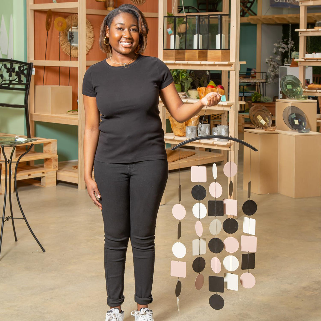 Elevate any space with this Neutral Colors Multi-Shaped Wind Chime. Hang this wind chime in your garden, on your porch or patio to hear serene chimes when the breeze blows. The chime is crafted of colored pieces of metal for zen-sational flair. The wind chime comes with a jute hanging rope for easy display.