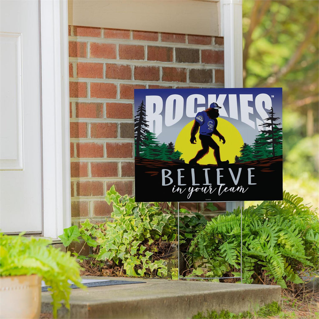 Show off your team spirit with the Colorado Rockies Yard Sign featuring Bigfoot. This eye-catching garden sign is perfect for any baseball fan's outdoor space. Made from durable materials, it withstands the elements while bringing a touch of whimsy to your yard. Whether you're hosting a game day party or just want to display your loyalty, this sign is a fun and bold addition. Measuring 24 inches by 18 inches, it's the ideal size for gardens and walkways.