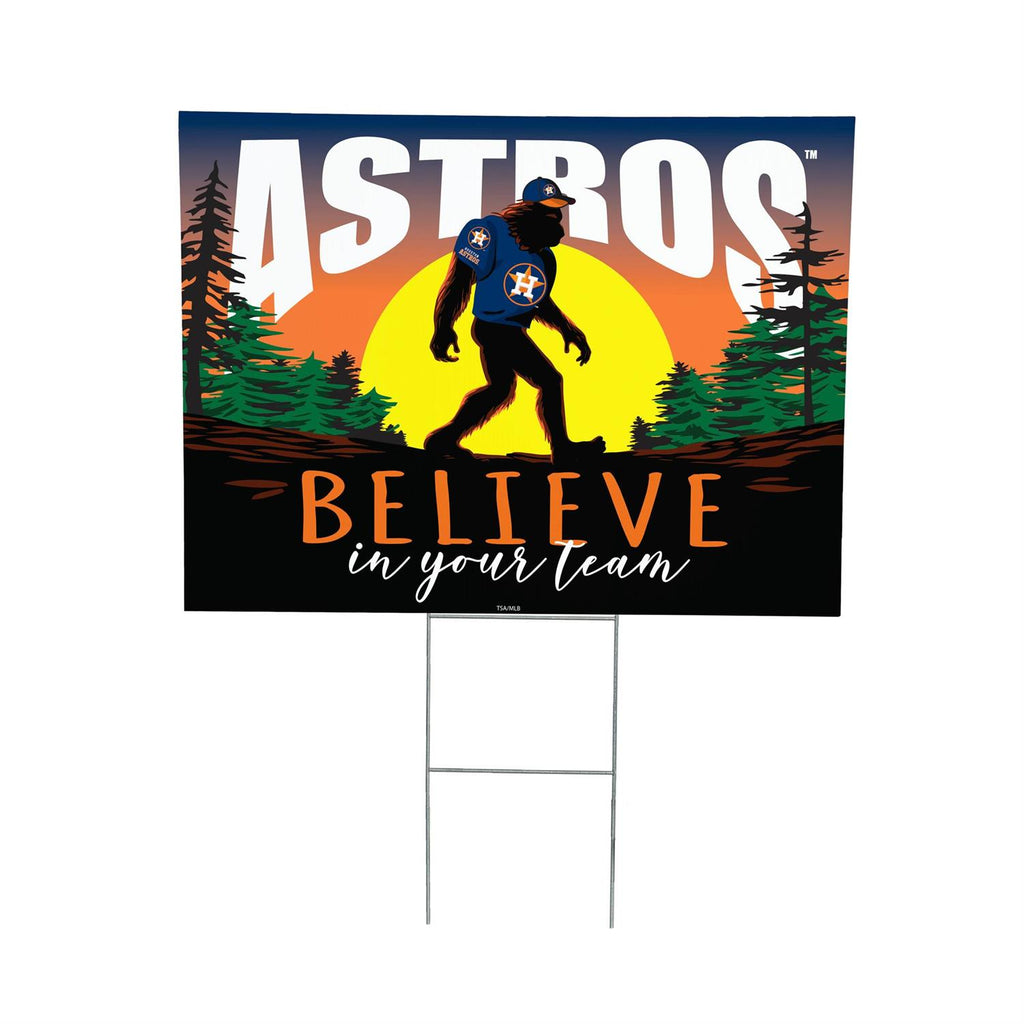 Show your team spirit with this unique Houston Astros Yard Sign featuring Bigfoot. Perfect for any garden or lawn, this vibrant sign adds a whimsical touch to your outdoor decor. Measuring 24 inches in length and 18 inches in width, it's easy to spot from a distance. The durable construction ensures it withstands various weather conditions, making it ideal for year-round display. Whether you're hosting a game day party or simply want to show your support, this eye-catching sign is a must-have for any Astros fan.