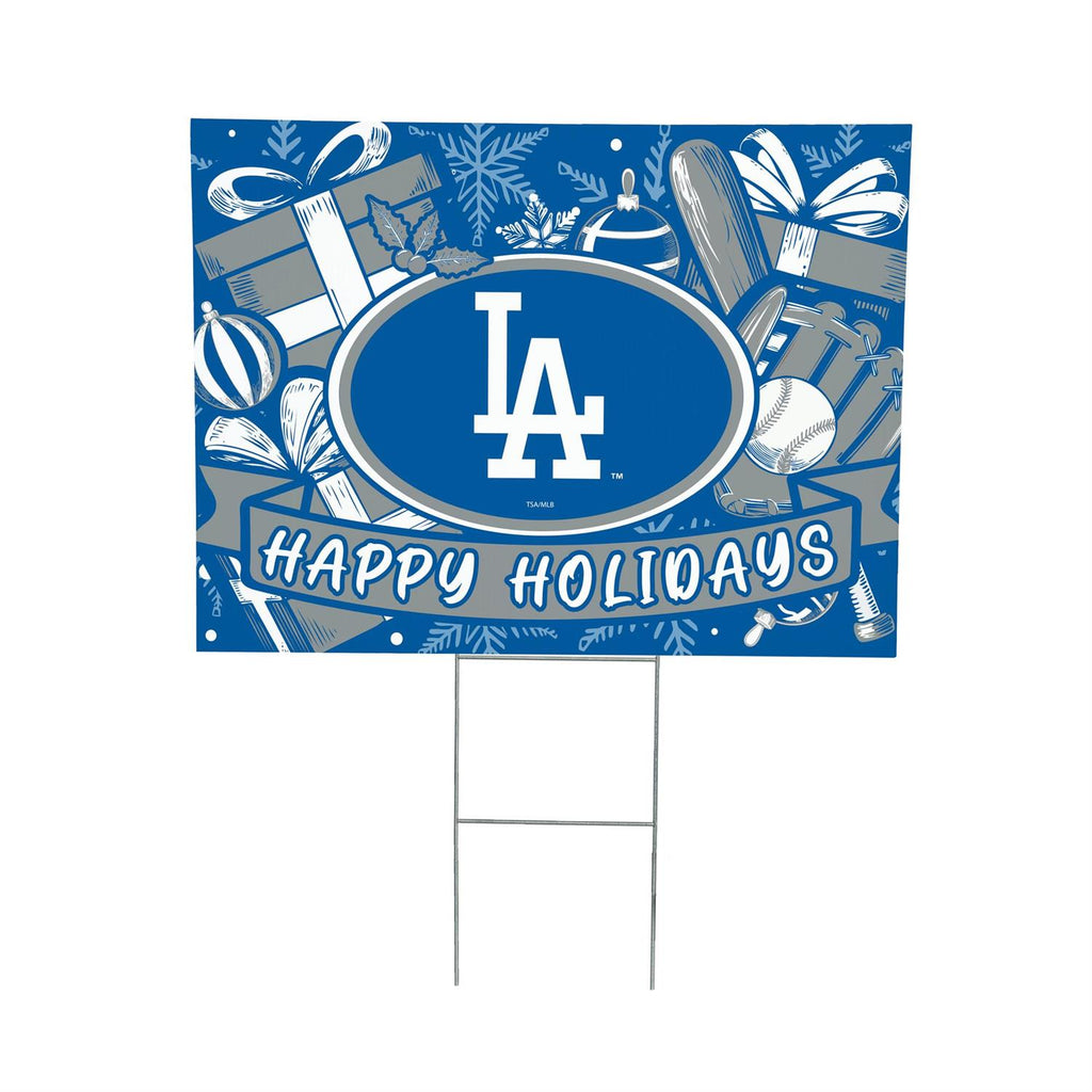 Show your team spirit and holiday cheer with this Los Angeles Dodgers Yard Sign. Perfect for your garden or front yard, this sign features a festive design with the iconic Dodgers logo surrounded by holiday elements like snowflakes and gifts. Measuring 24 inches by 18 inches, it's designed to withstand the elements while celebrating the season. Made from durable materials, this sign ensures your love for the Dodgers shines bright all winter long. Easy to install, it brings a touch of team pride to your outdoor holiday decor.