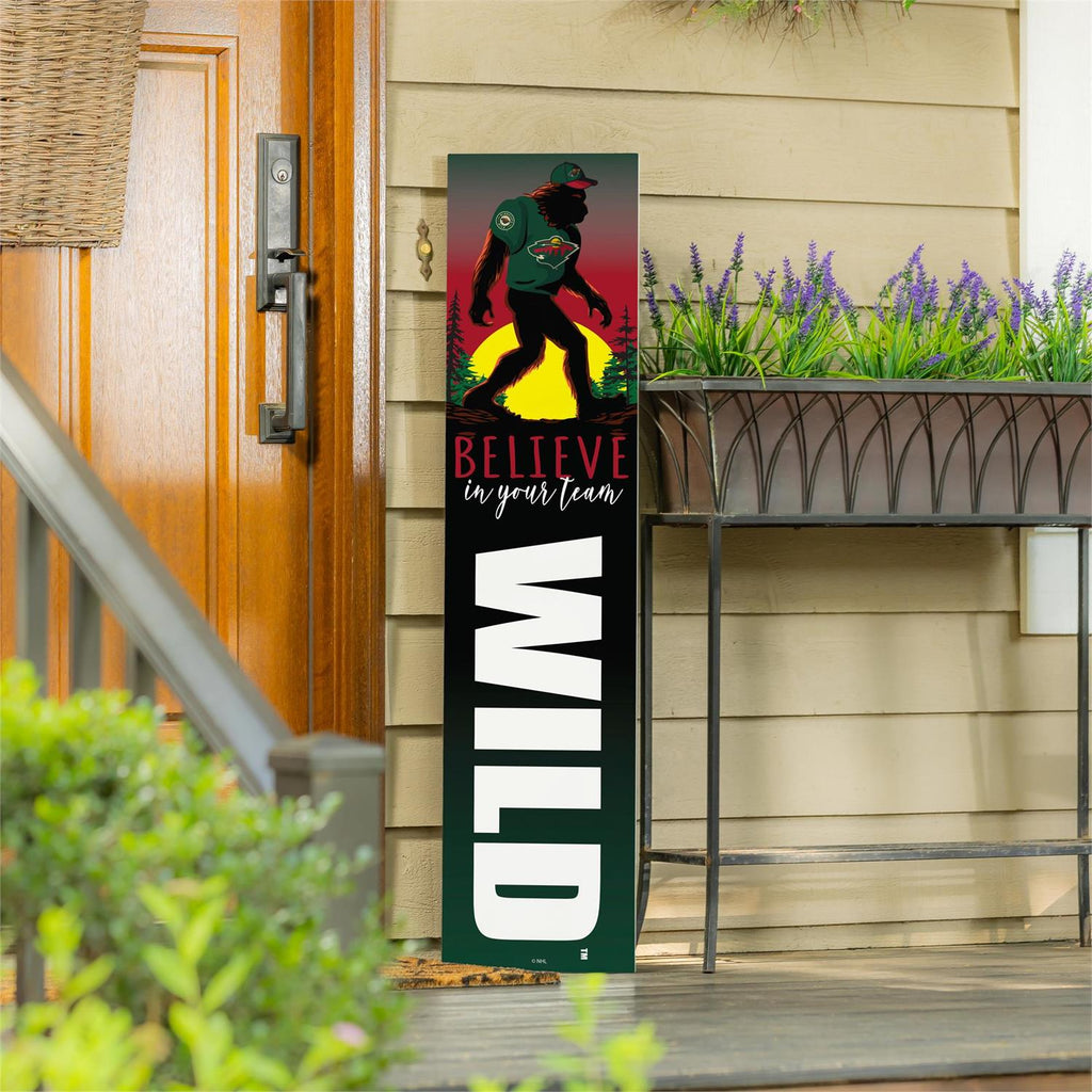 Celebrate your love for the Minnesota Wild with this unique 46-inch double-sided porch leaner featuring Bigfoot. Perfect for any fan, this eye-catching piece showcases the team's spirit with a bold design that's sure to stand out. The leaner is crafted for durability, making it an ideal addition to your porch or garden. With its slim profile, it fits seamlessly into any outdoor space, adding a touch of team pride without overwhelming your décor. Whether you're gearing up for game day or just want to show your ongoing support, this porch leaner is a must-have for any true fan.